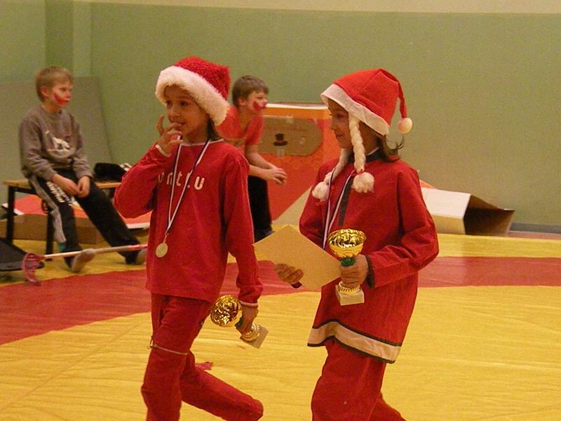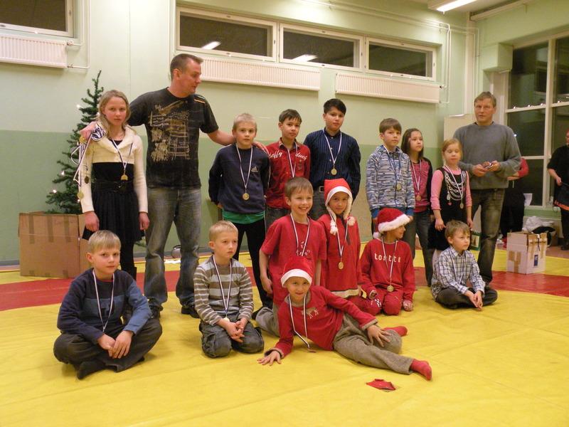 Painivuosi 2011 saatettiin päätökseen perjantaina 9.12 tutulla salilla. Paikalle oli kerääntynyt kymmeniä painileikkikoululaisia sekä jo isompia kisakävijöitä. Naistoimikunnan oli helppo järjestää monipuolista ohjelmaa, sillä omasta joukosta löytyi monia osaajia. Nähtiin mm kuvaesitys menneestä kaudesta, painiesitys, musiikkia, taikuritemppuja ja tietysti Joulupukki.