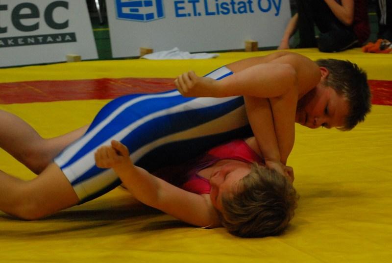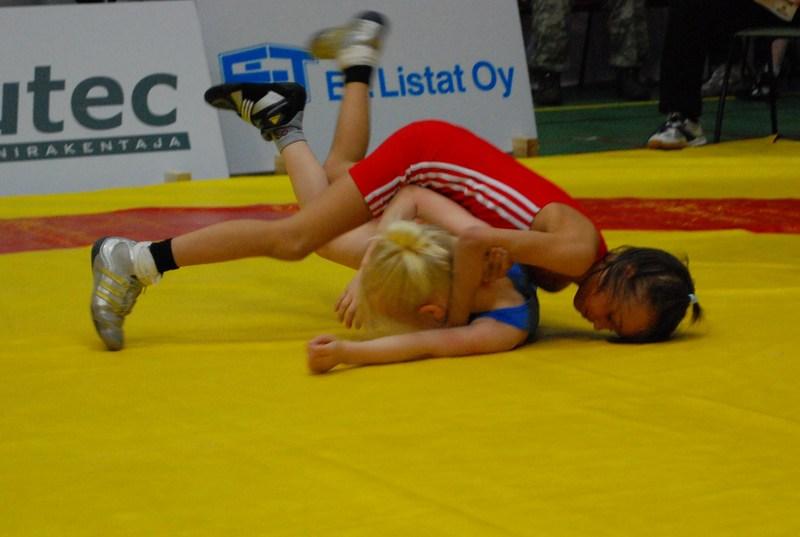 Veera Lehtimäki voitti tyttöjen sarjan 23 kg ja hyvän vastuksen antoi kaksoissisar Vilma.Tytöt kävivätkin kovan keskinäisen kamppailun, joka tällä kertaa päättyi Veeran voittoon.Sarjan muut kaksi tyttöä molemmat Lehtimäen siskokset voittivat selkävoitolla.
