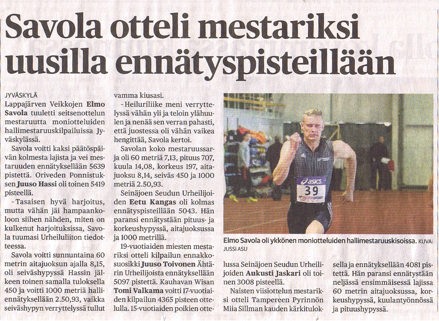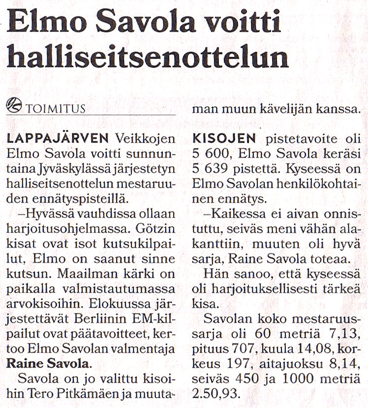 SuomiUrheilu 8.8.2018 - Elmo tyytyväinen seipääseen