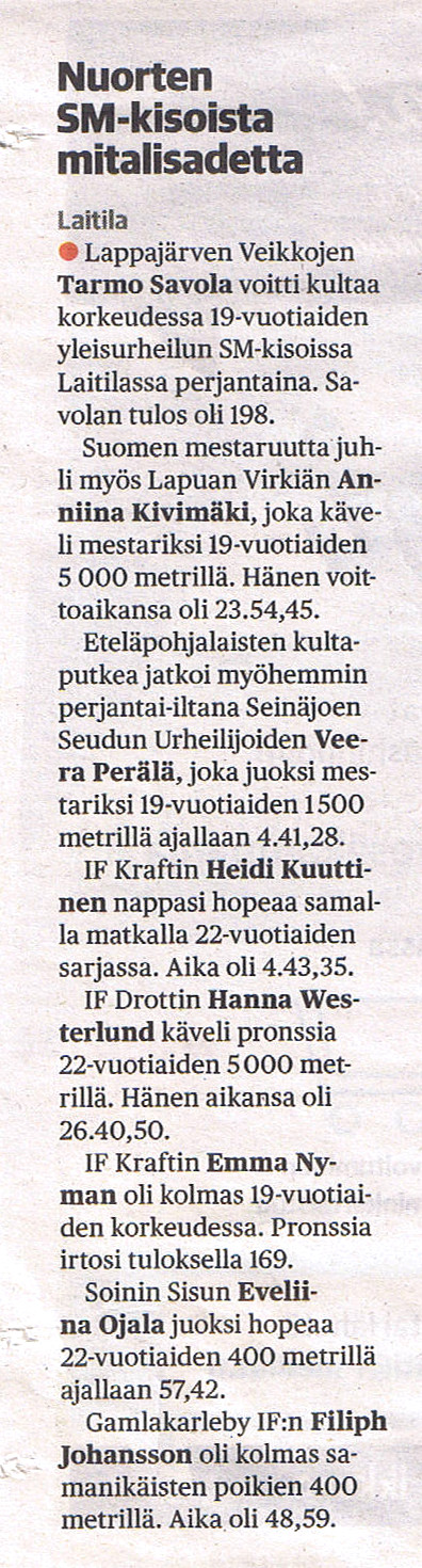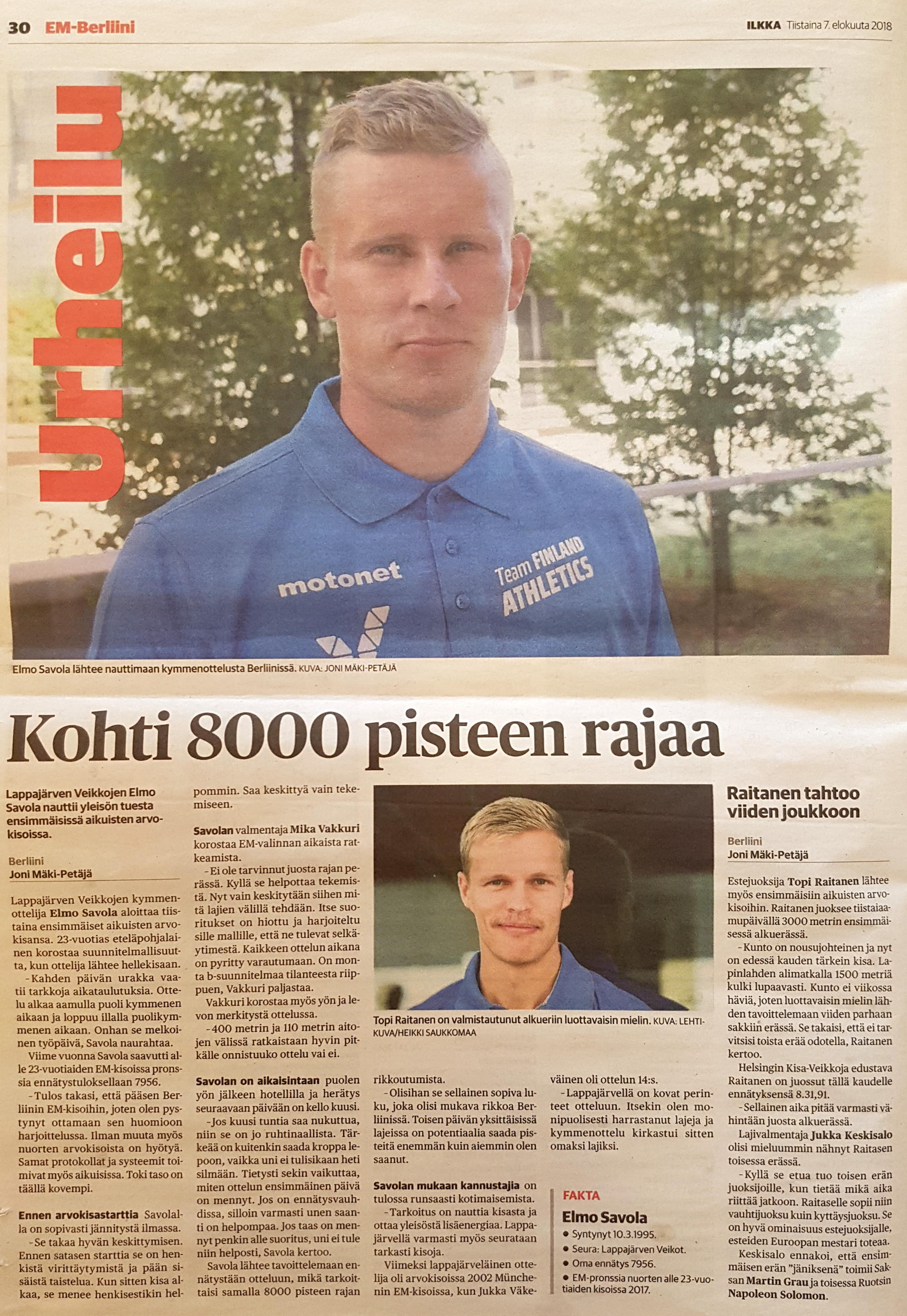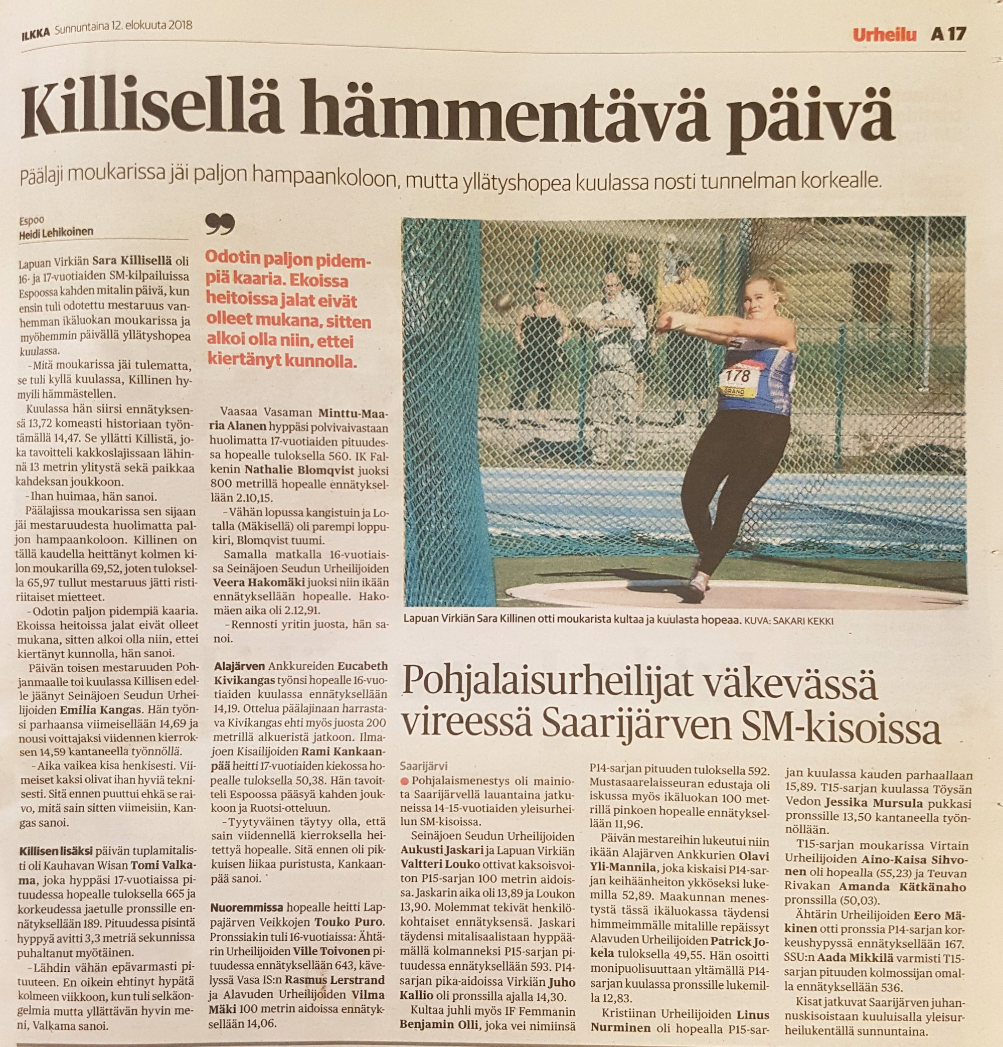 Kainuun Sanomat 8.8.2018 - Elmo 15. EM-kisoissa