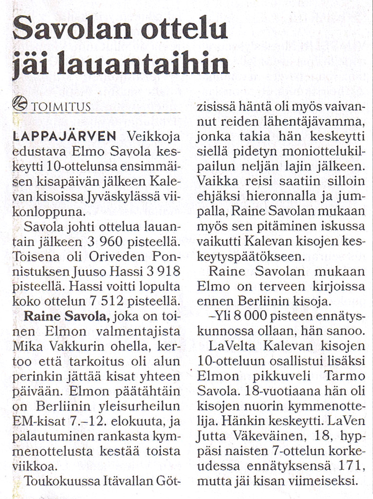 Yle.fi 8.8.2018 - Elmo 15. EM-kisoissa