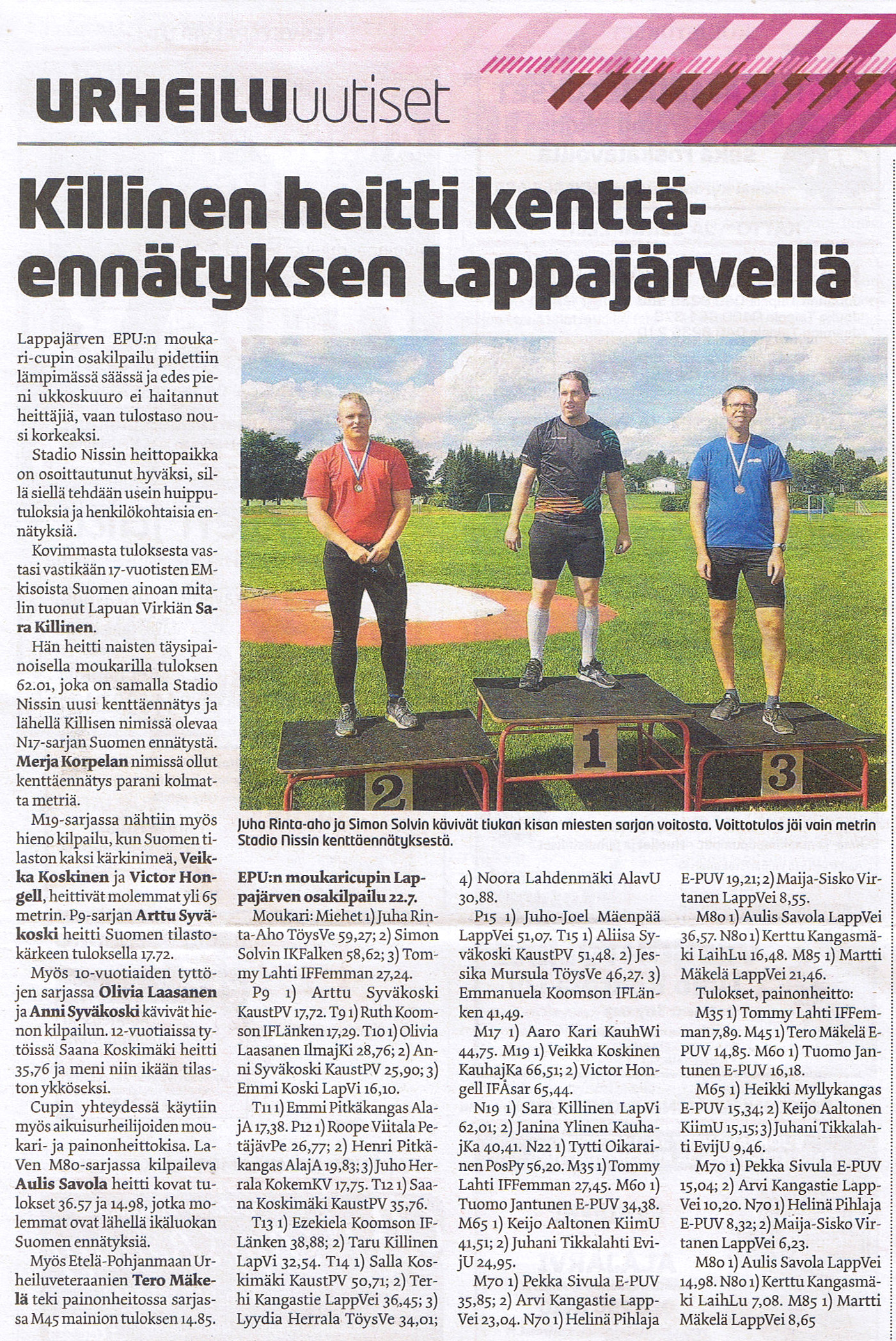 Sportti.com 8.8.2018 - Elmon keihäskisa
