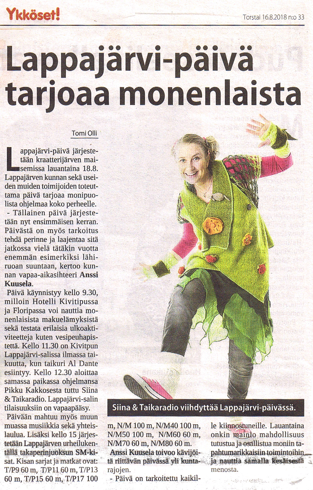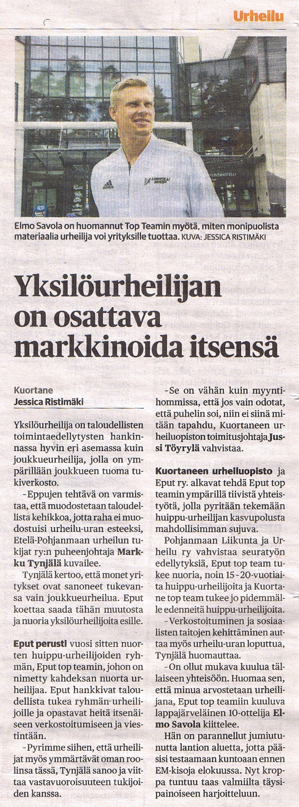 Ilta-Sanomat 8.8.2018 - Elmon 110 m:n aidat