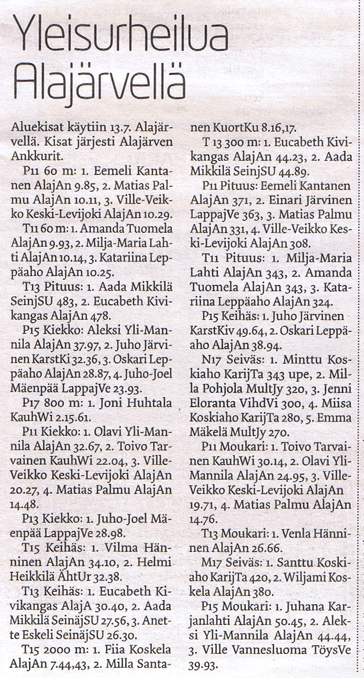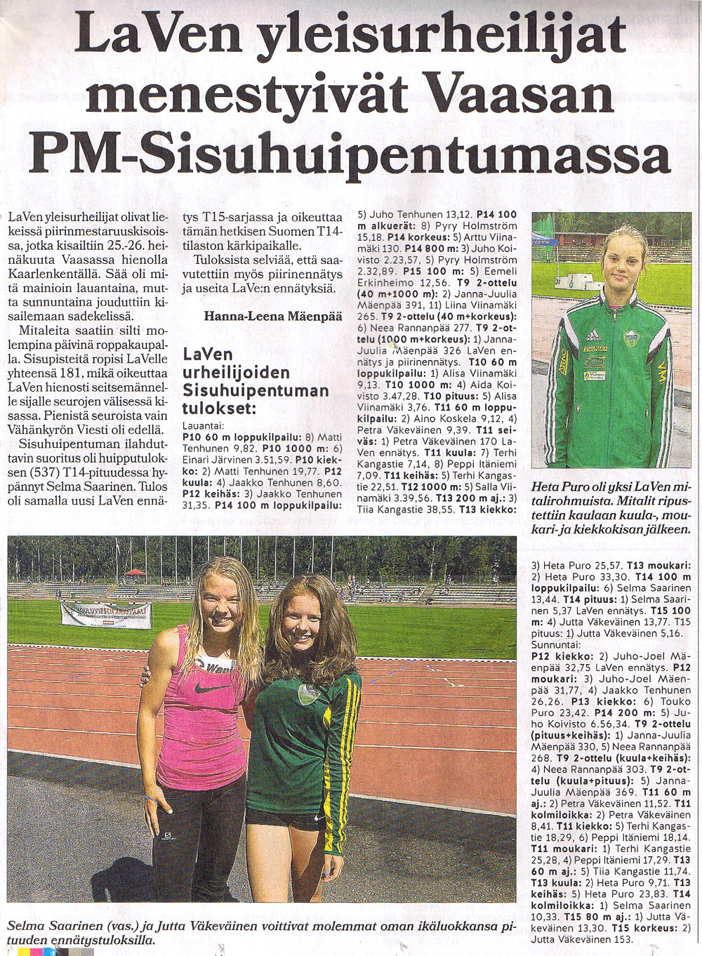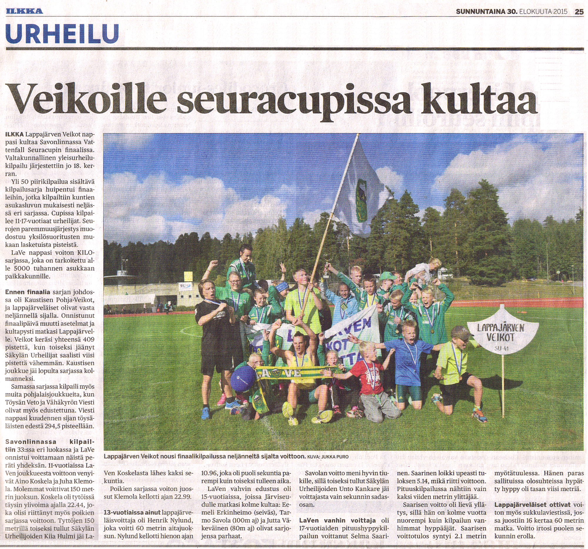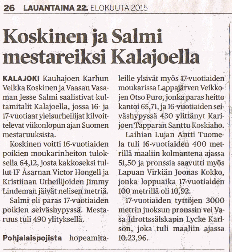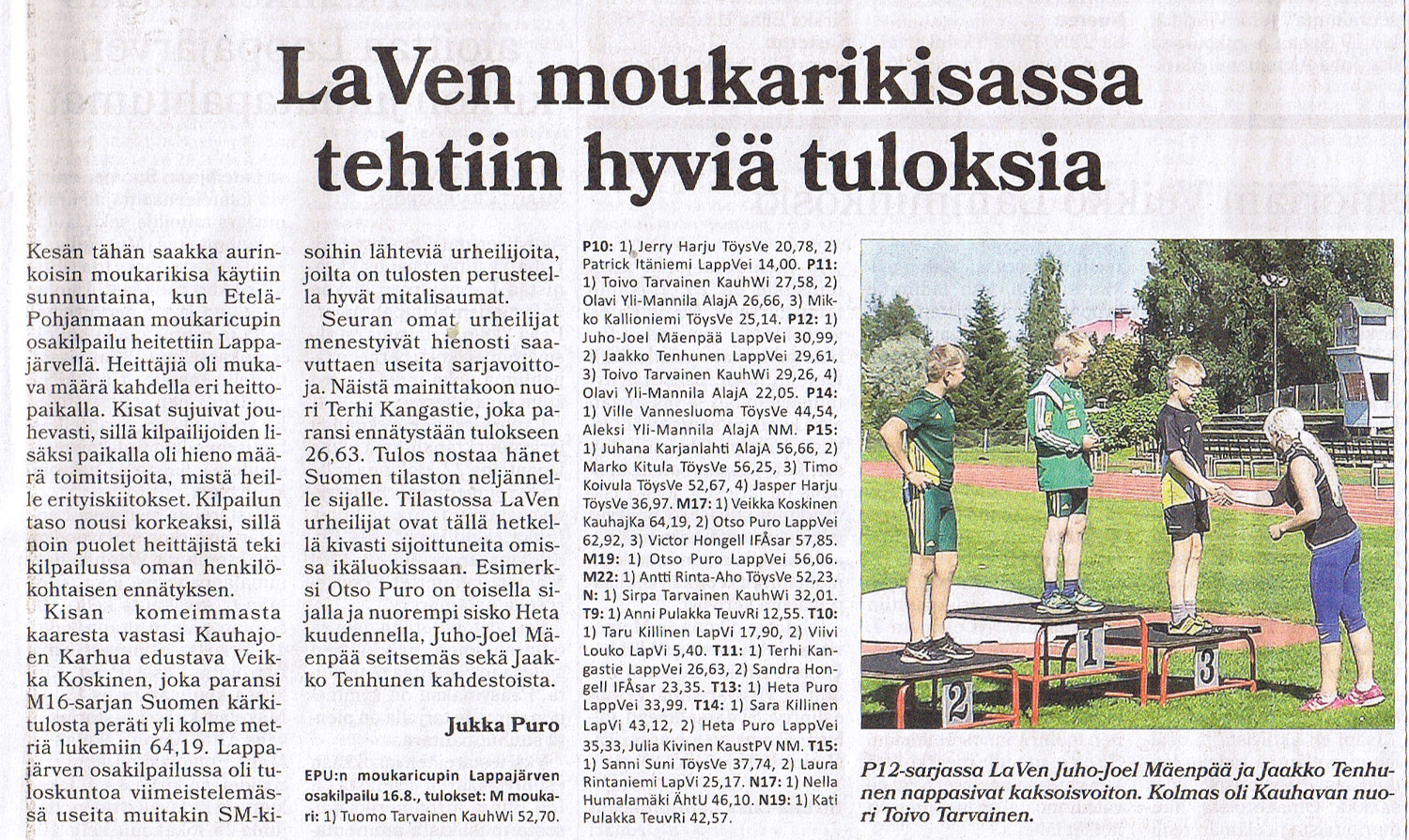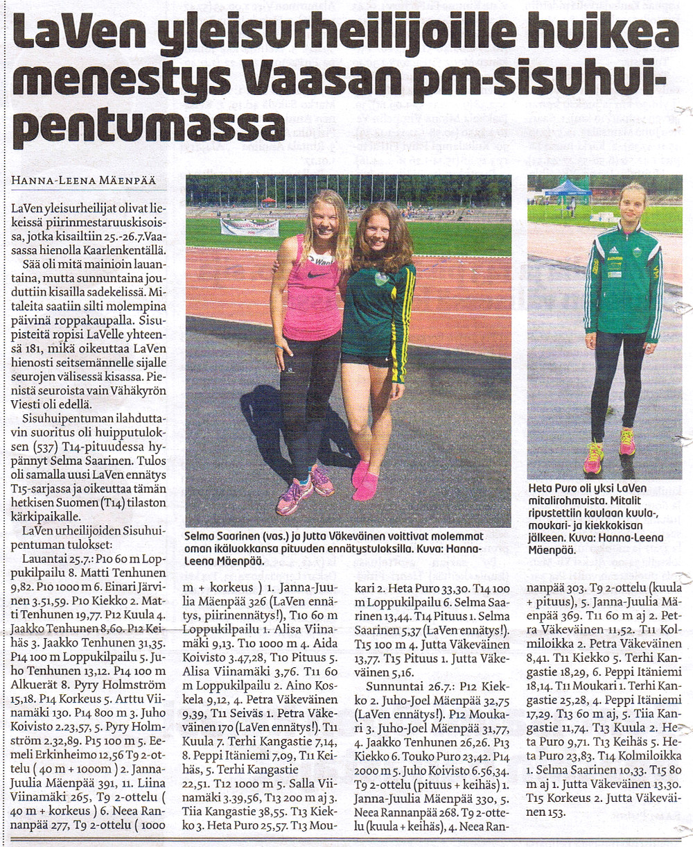 Järvi-Pohjanmaan Torstai 3.8.2015 - LaVen yleisurheilijoille huikea menestys pm:ssä