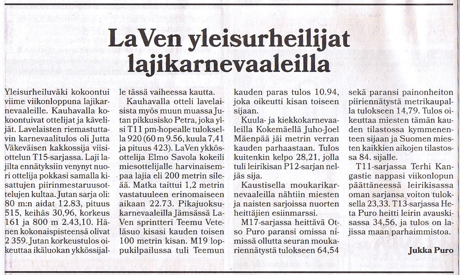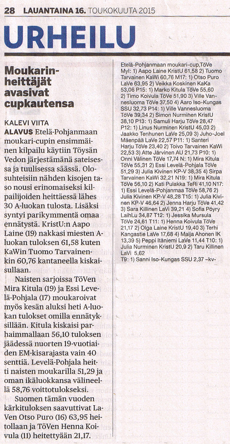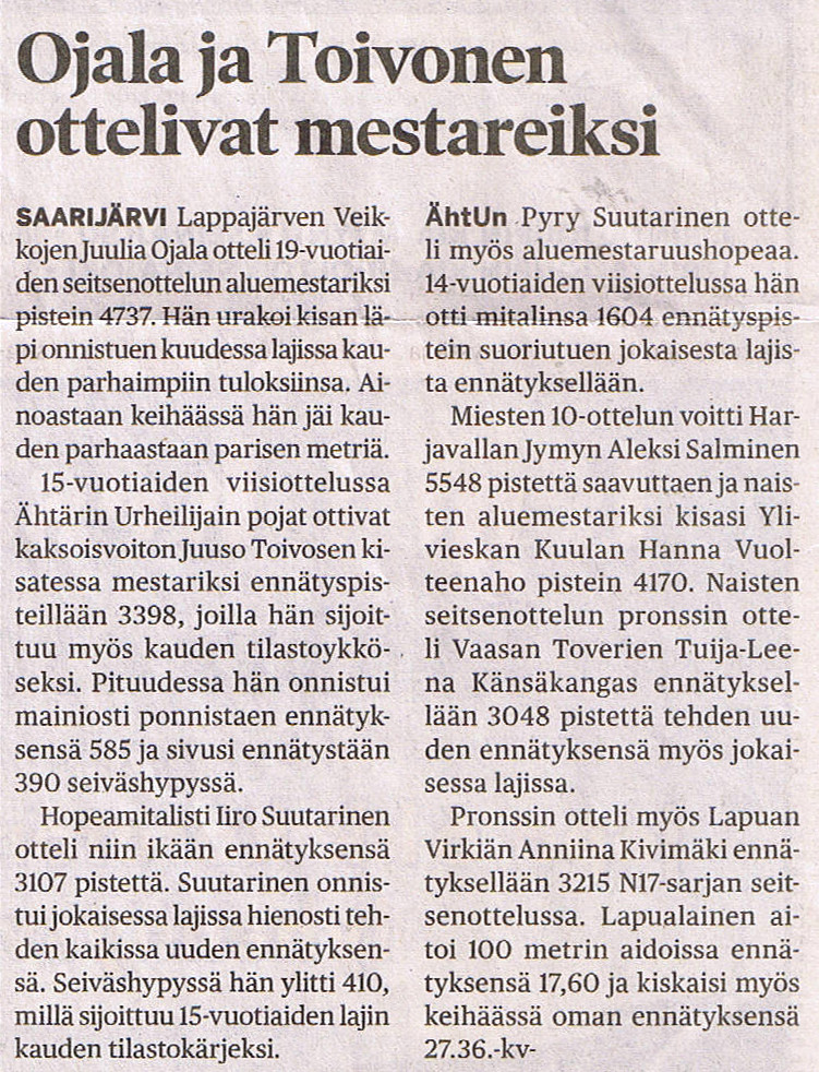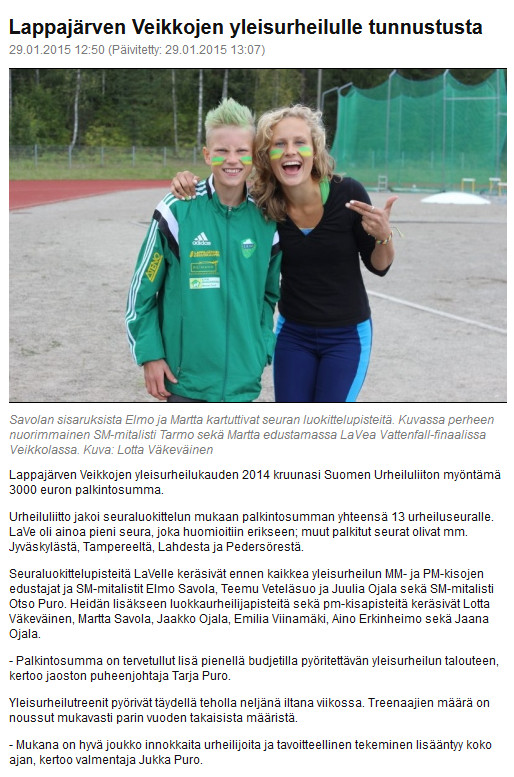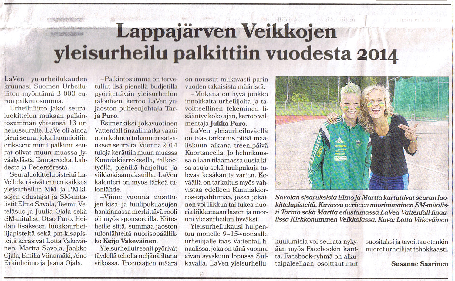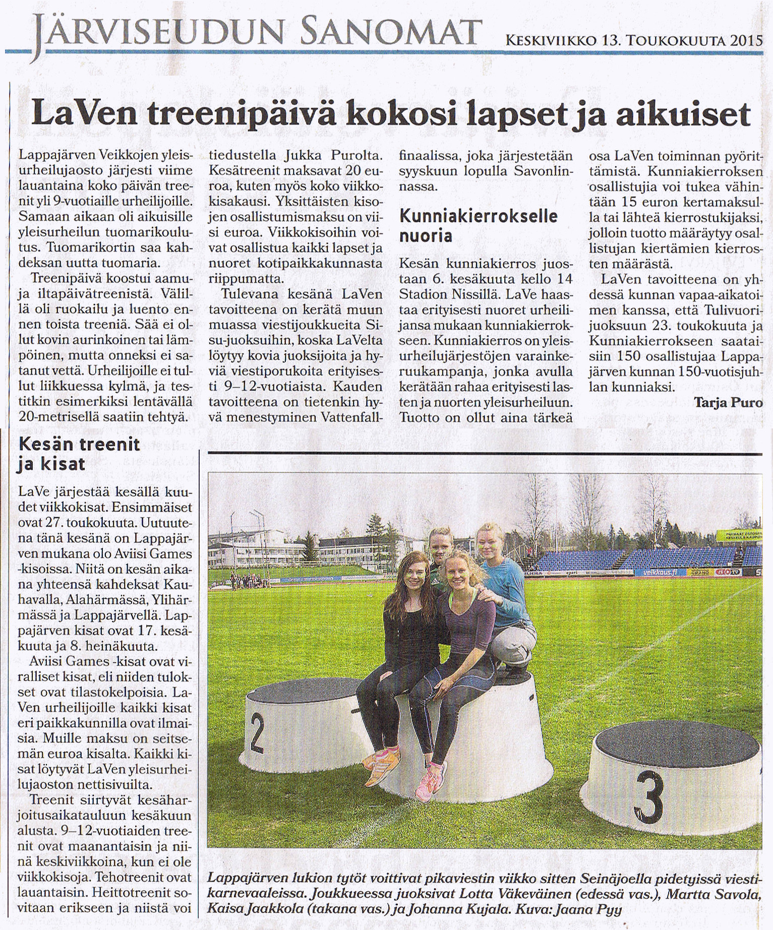Järvi-Pohjanmaan Torstai 3.8.2015 - LaVen yleisurheilijoille huikea menestys pm:ssä
