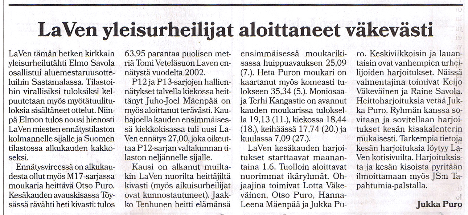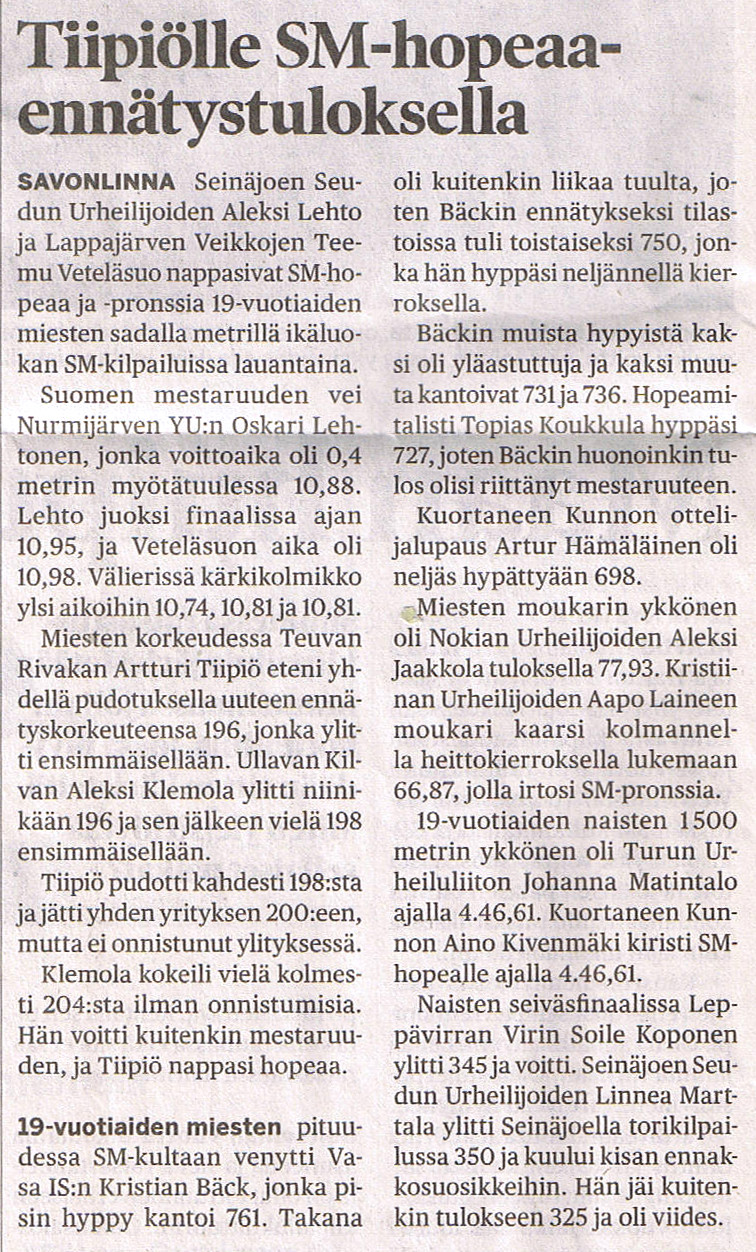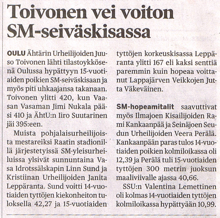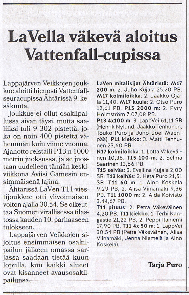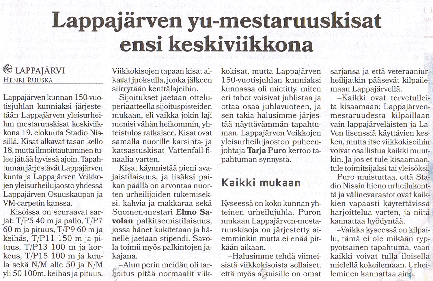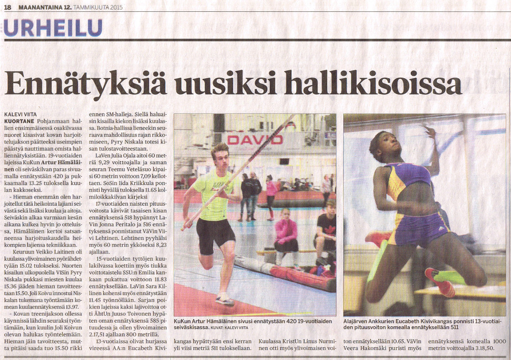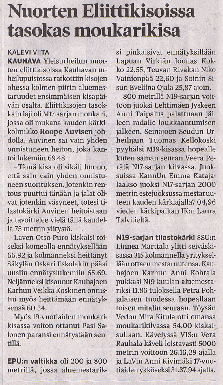 Järvi-Pohjanmaan Torstai 3.8.2015 - LaVen yleisurheilijoille huikea menestys pm:ssä