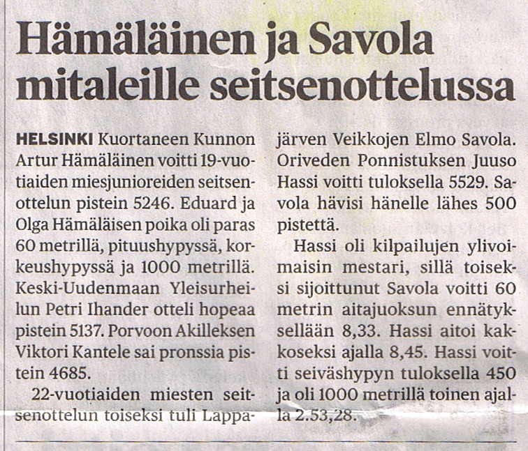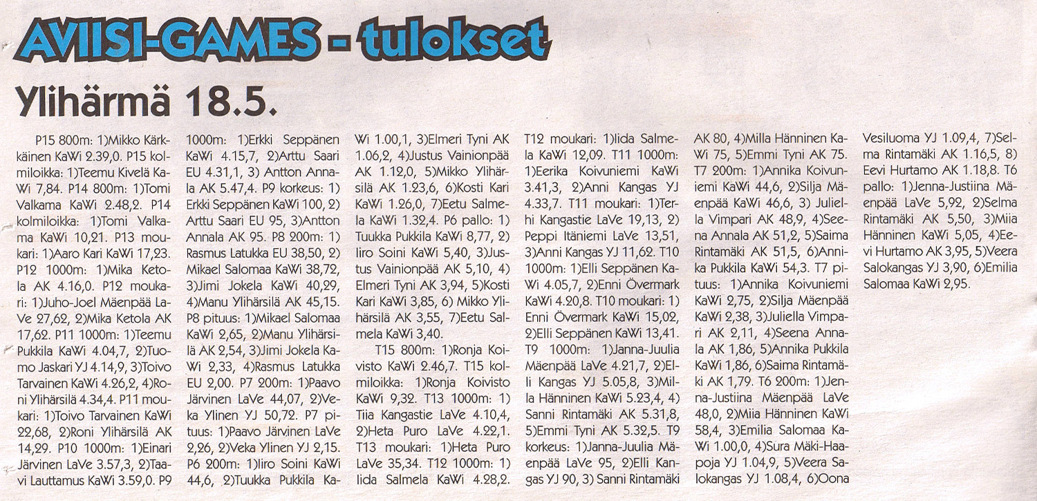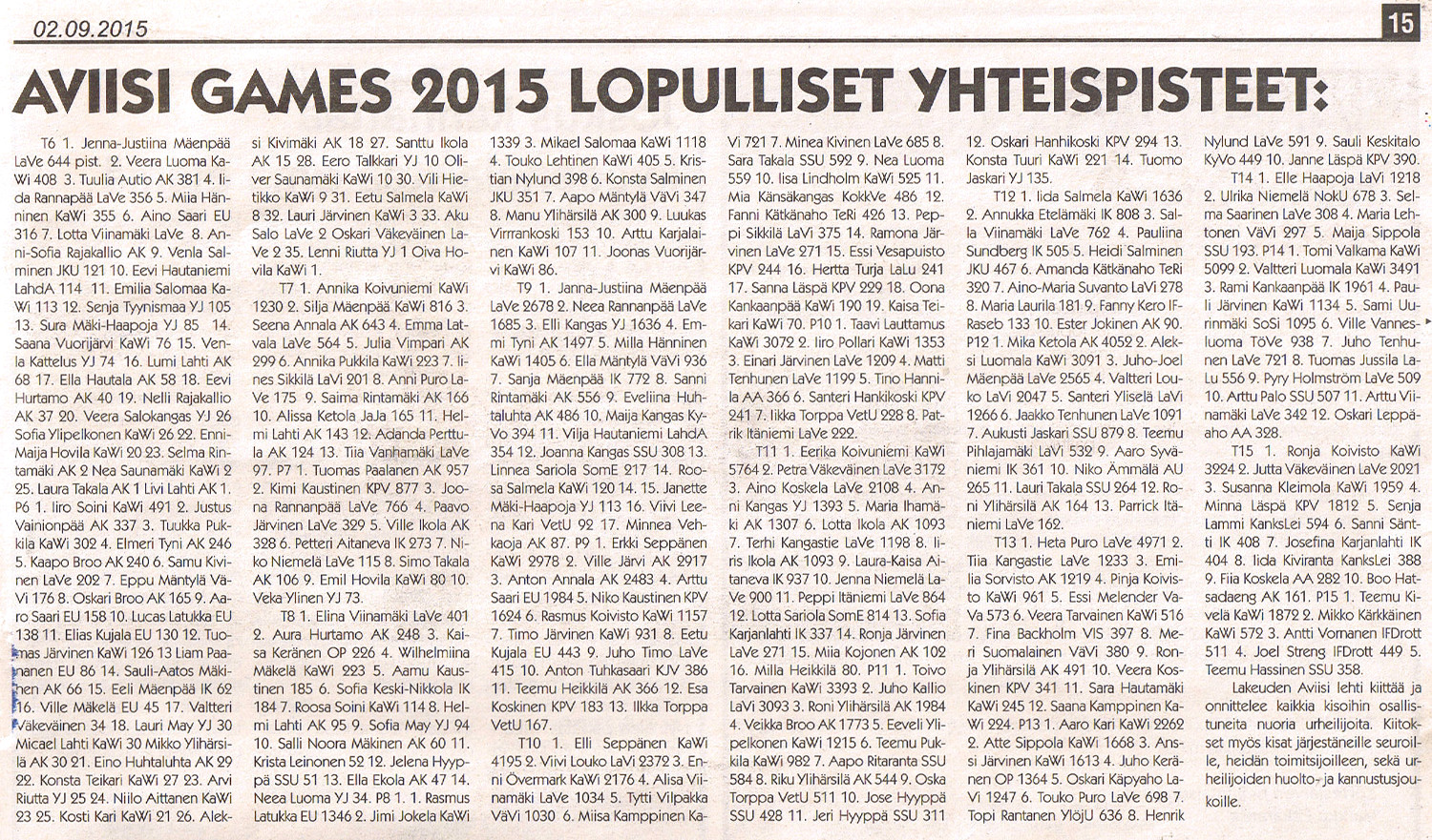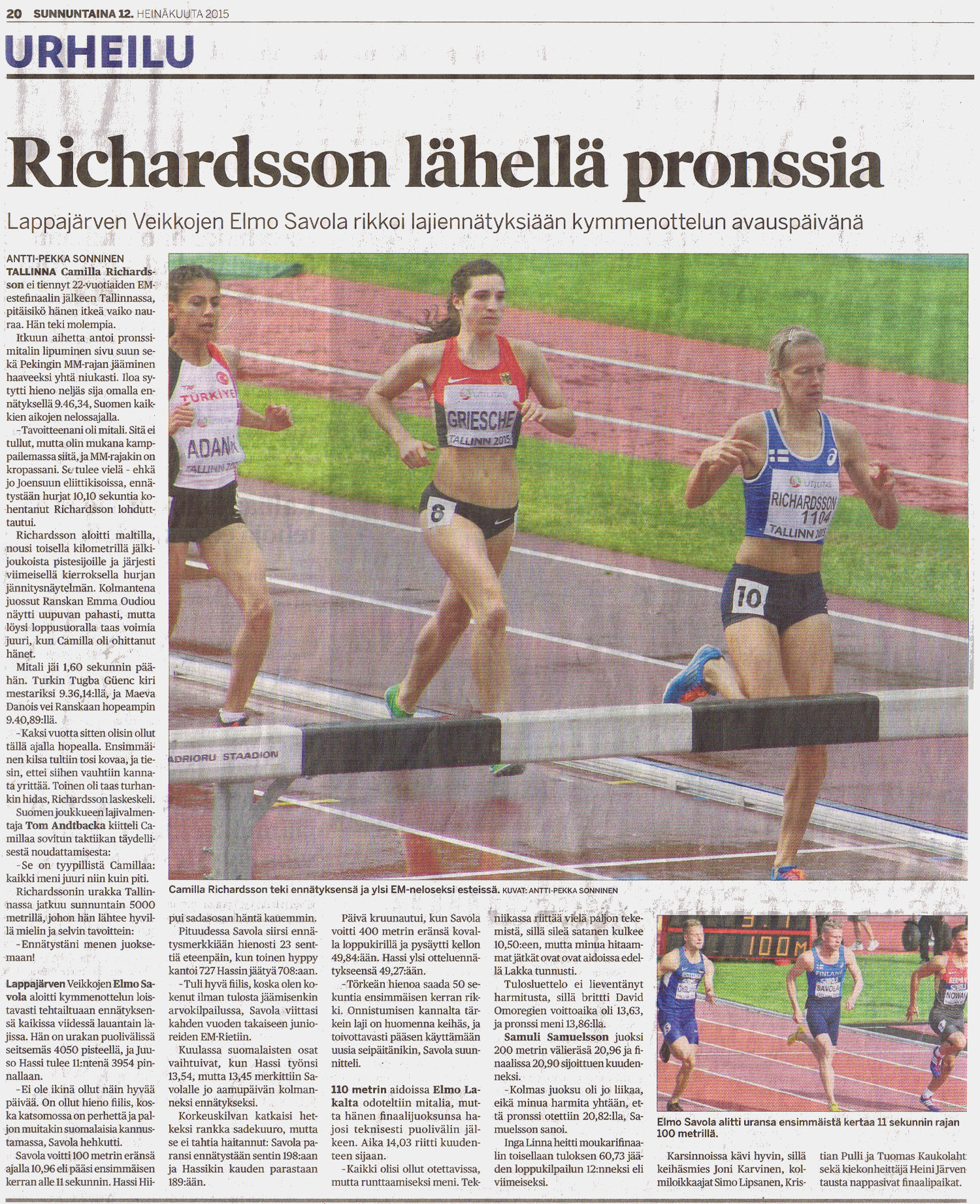 Yleisurheilu.fi 2.8.2015 - Elmon ottelu laji lajilta