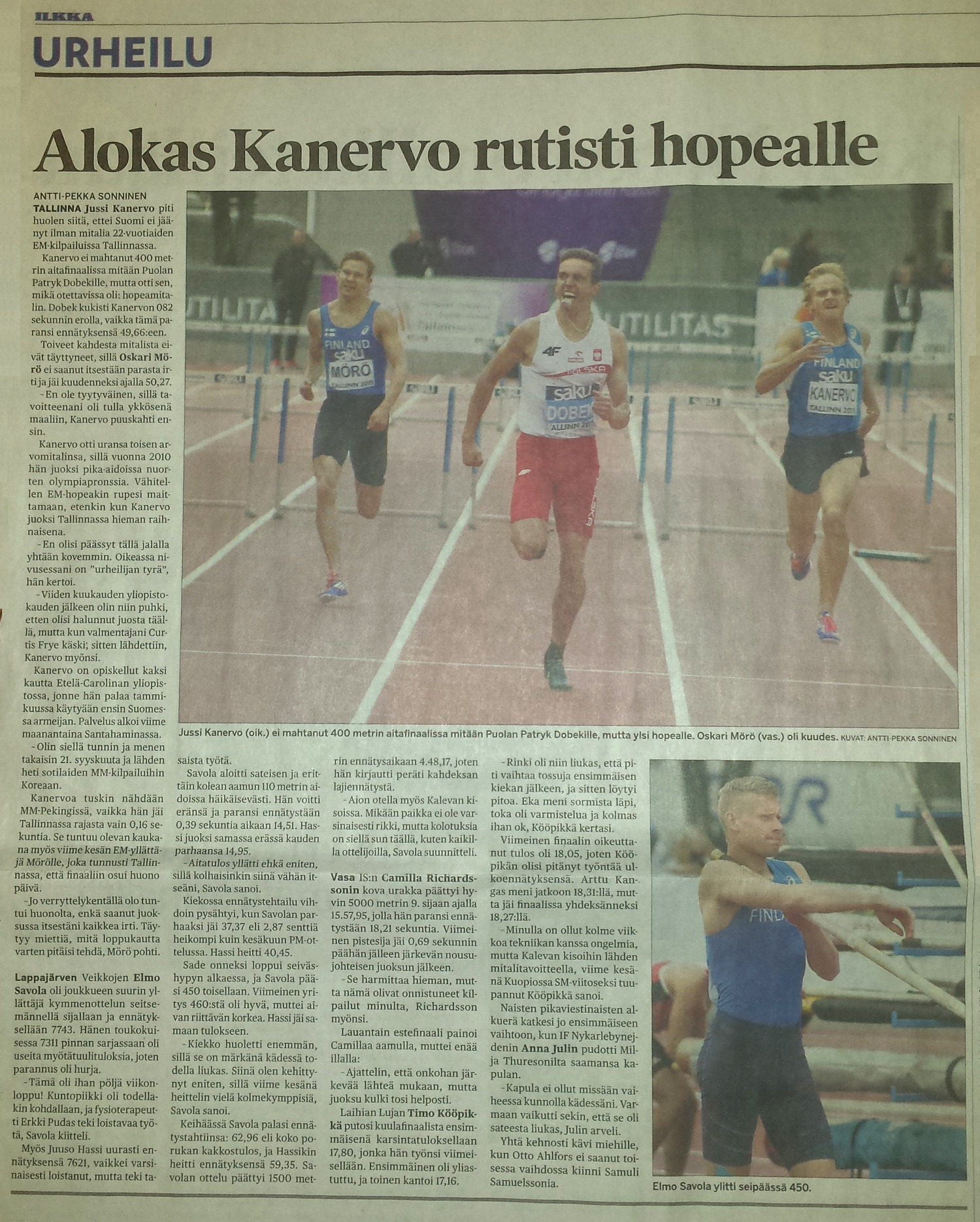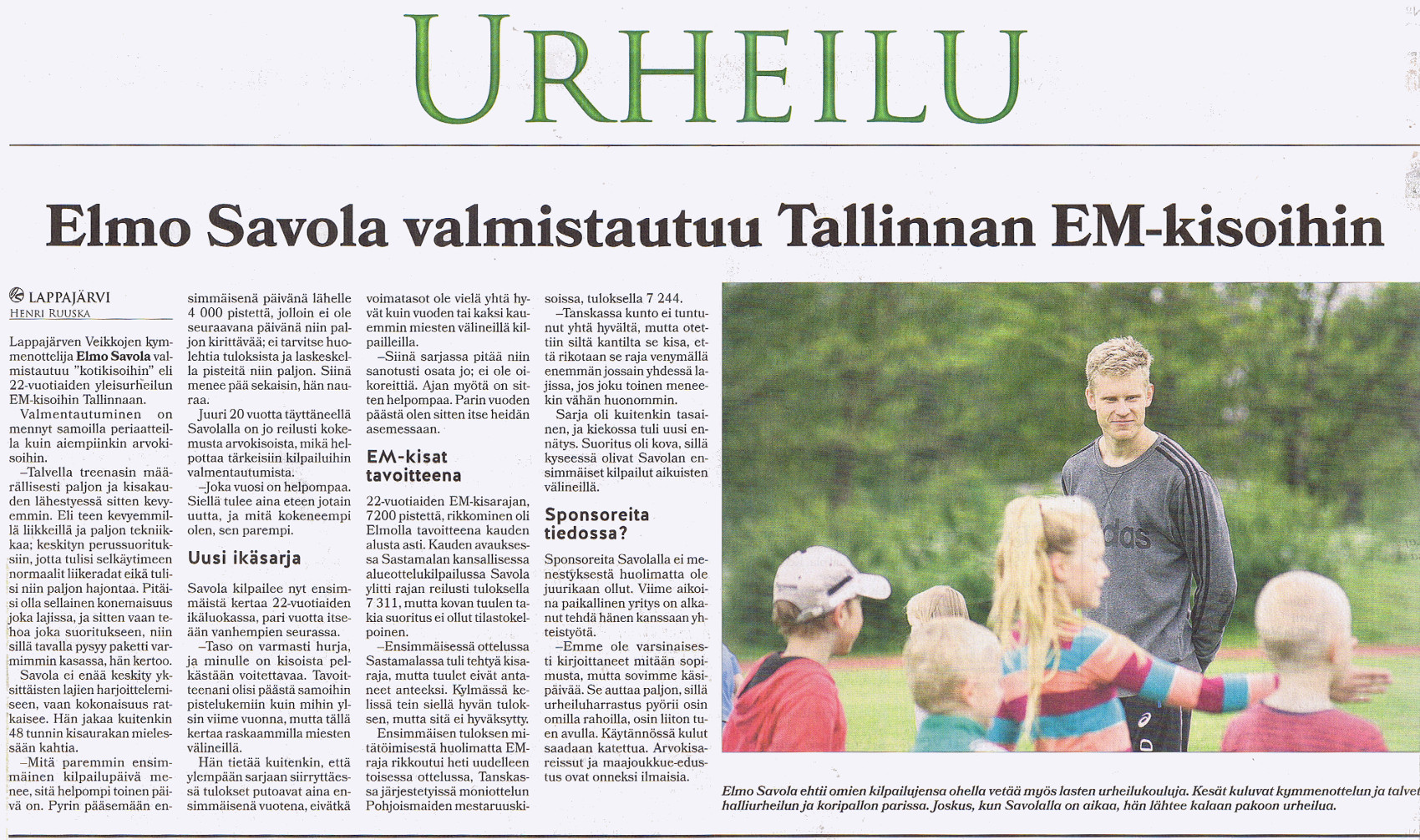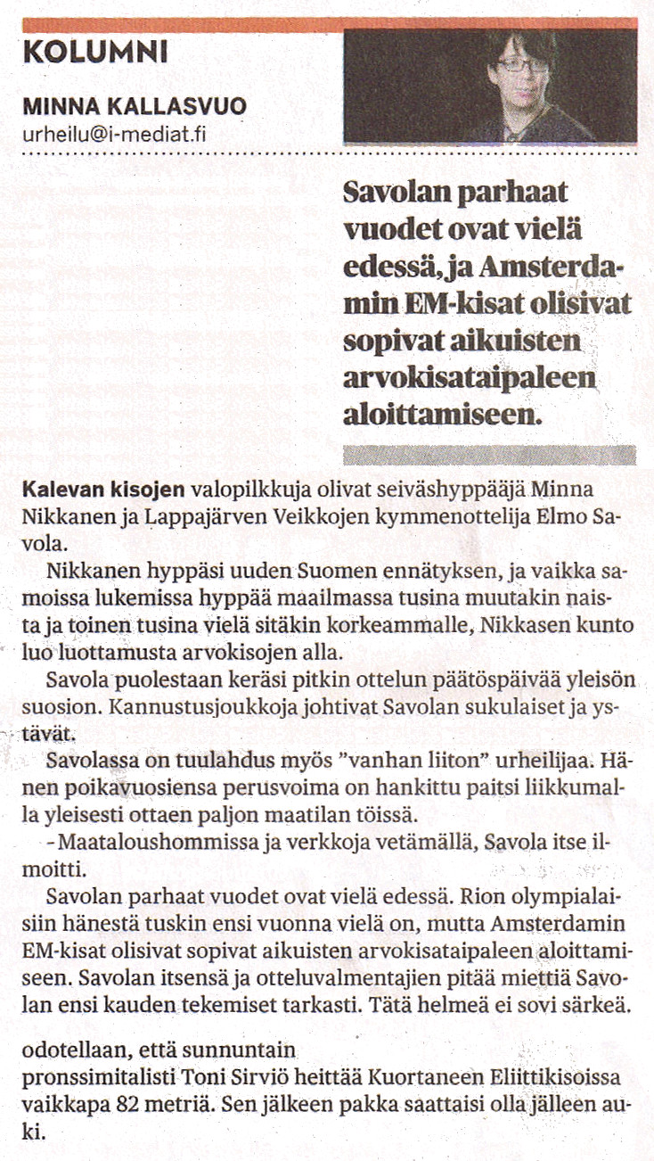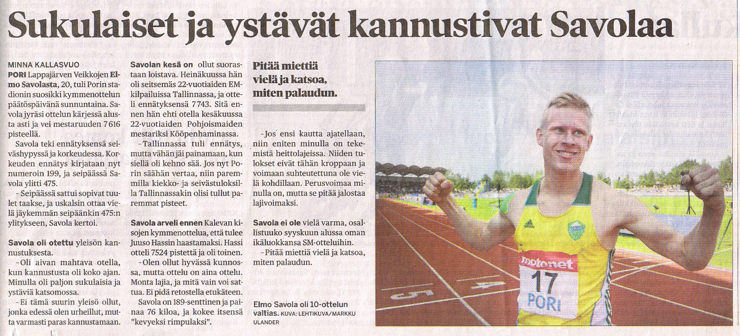 Ilkka 30.7.2015 - Elmolla tavoitteena mitali