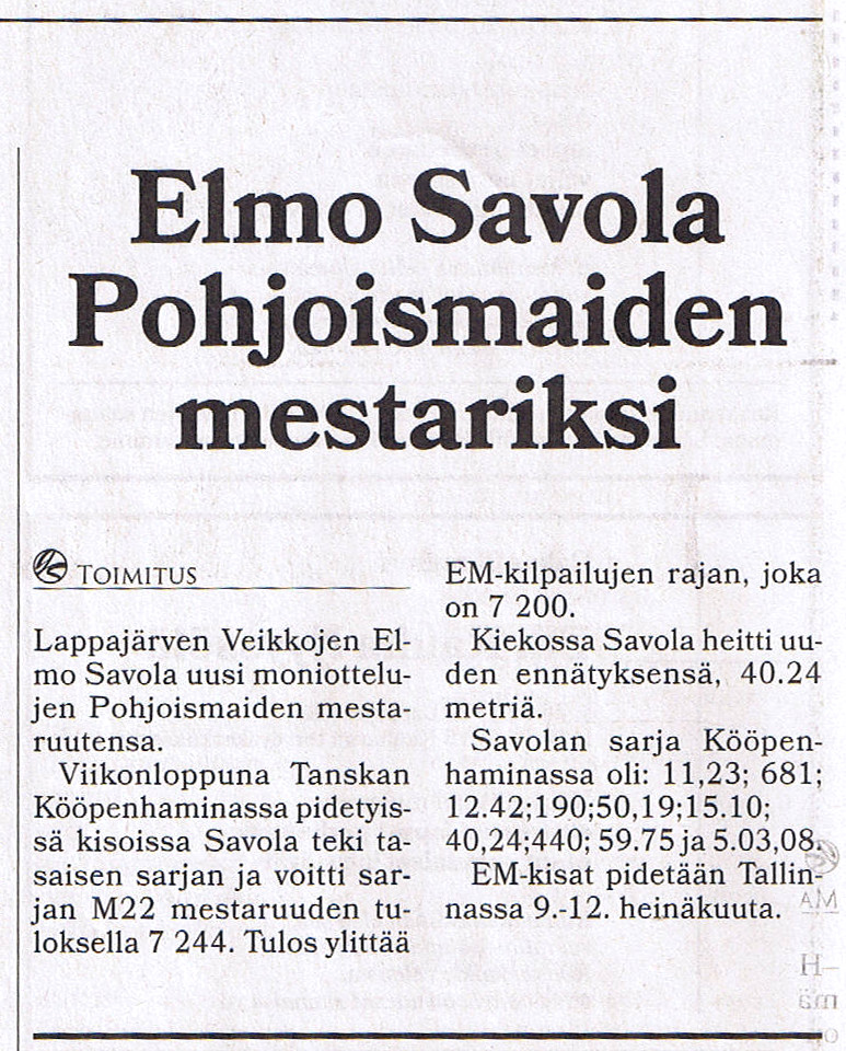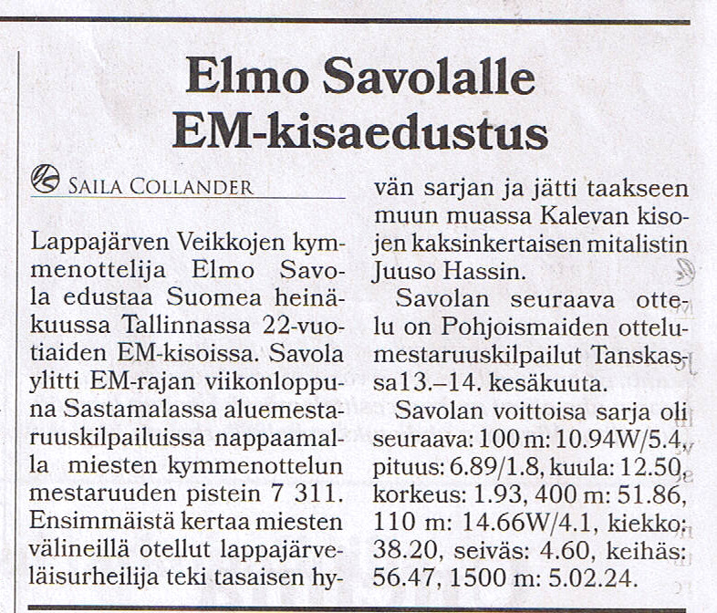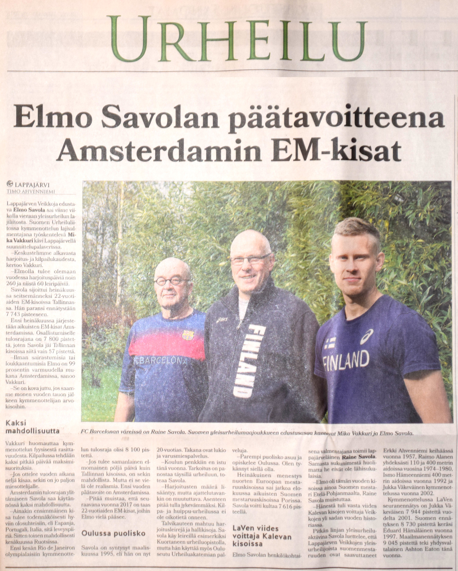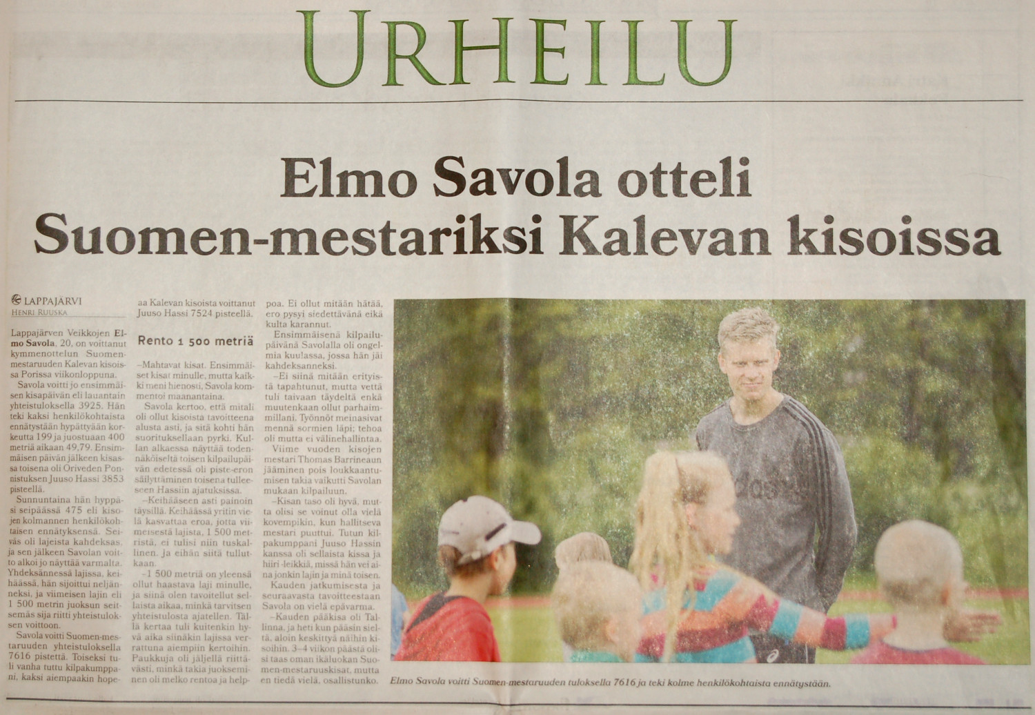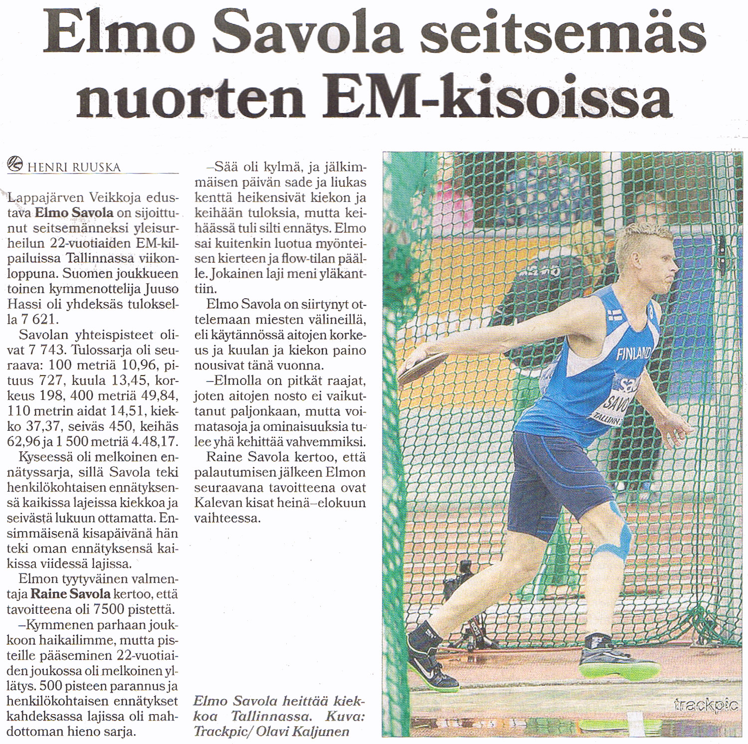 Ilkka 30.7.2015 - Elmolla tavoitteena mitali