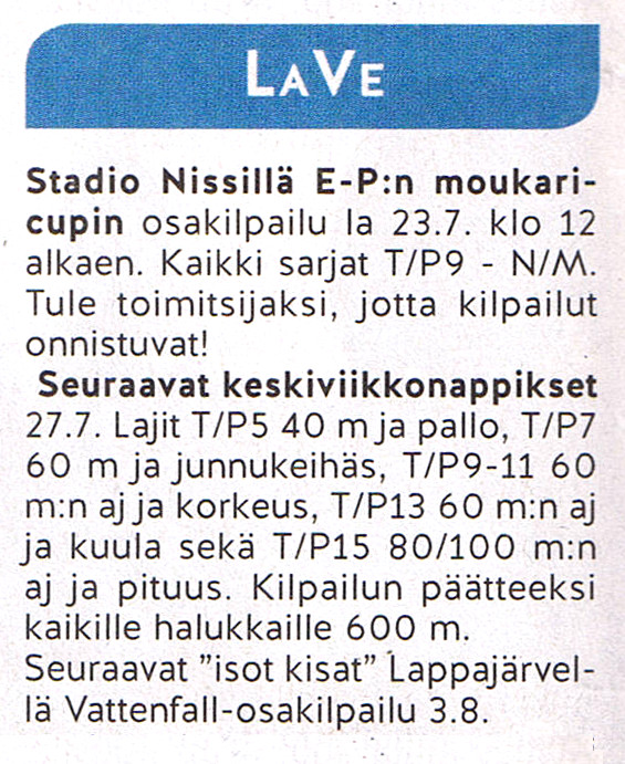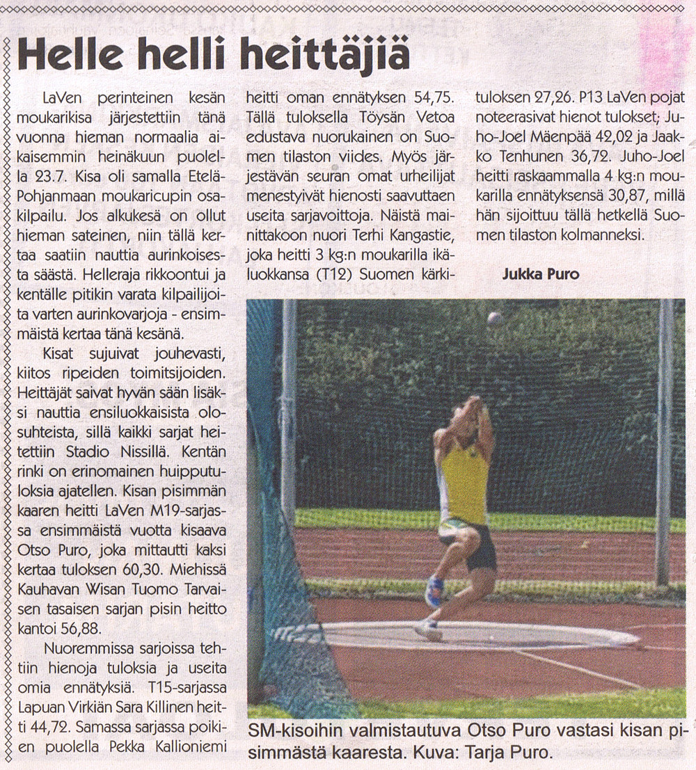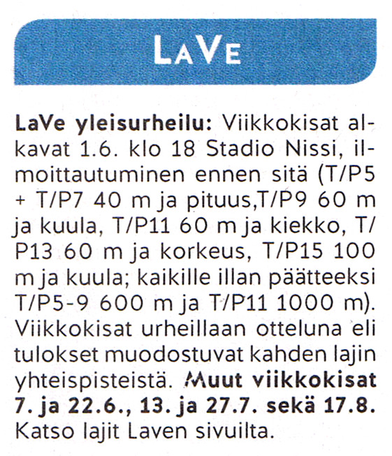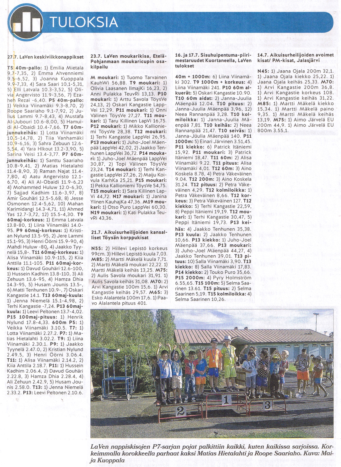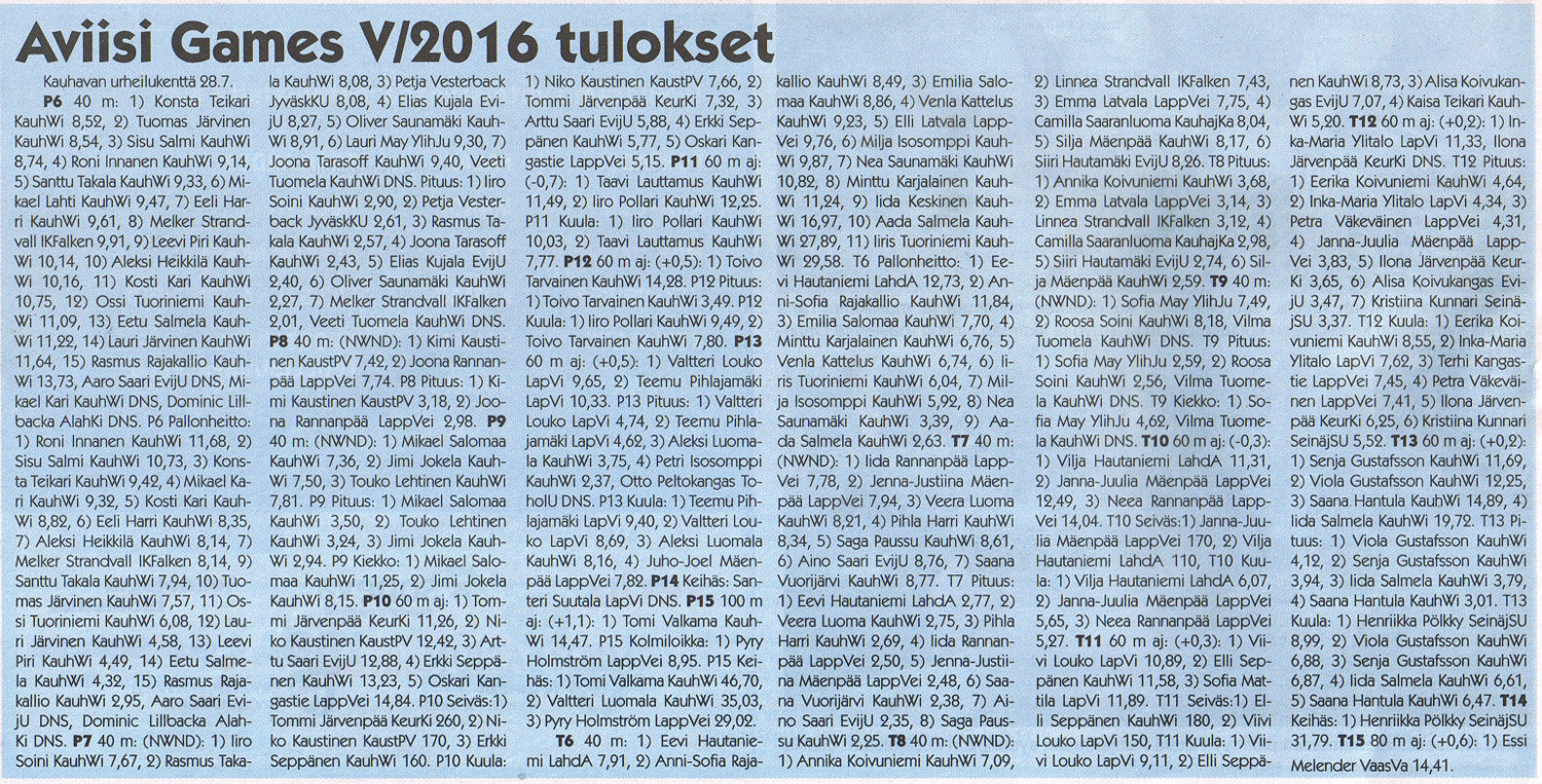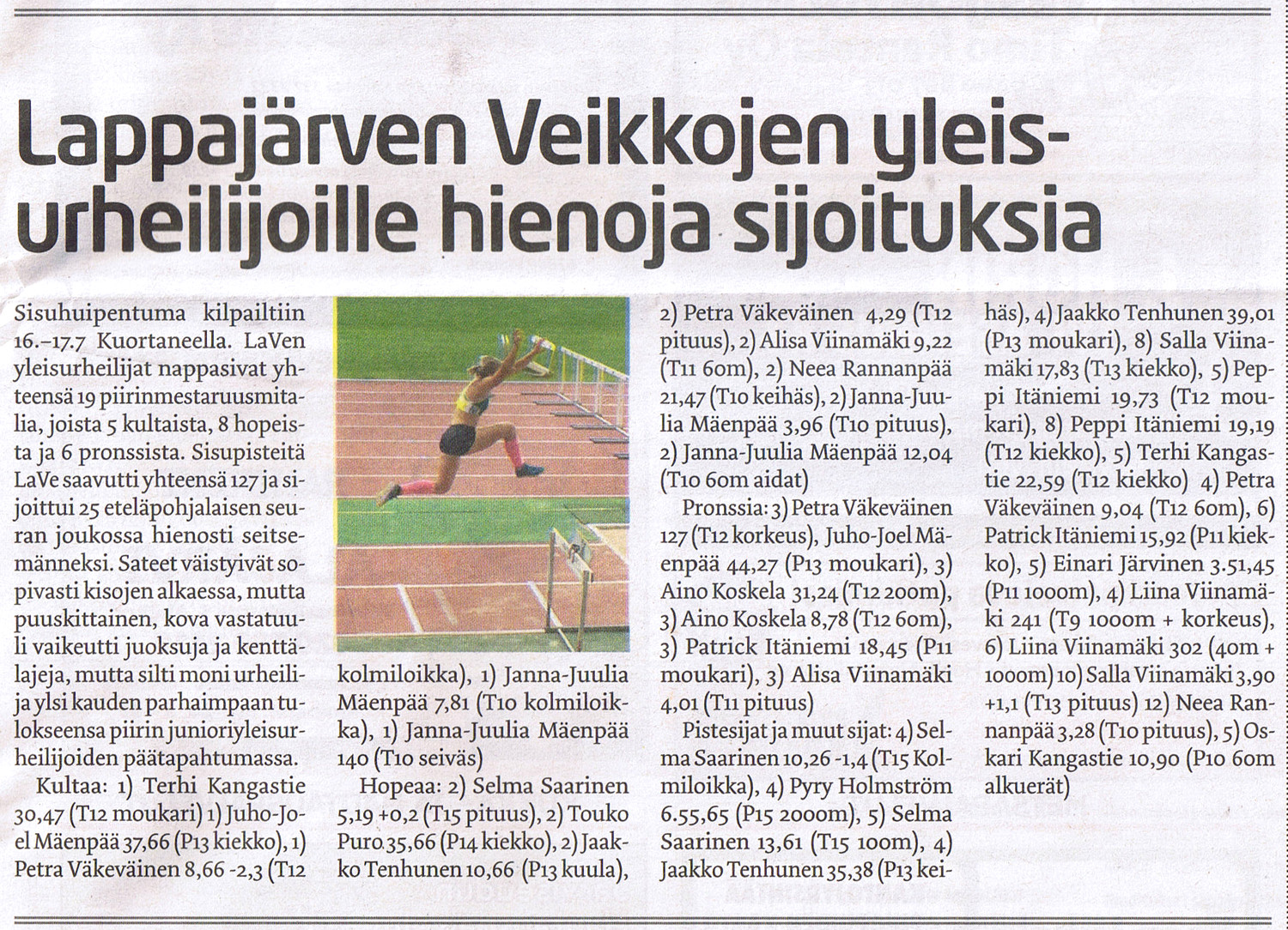 Torstai 26.7.2016 - LaVen urheilijoille hienoja sijoituksia pm-kisoissa