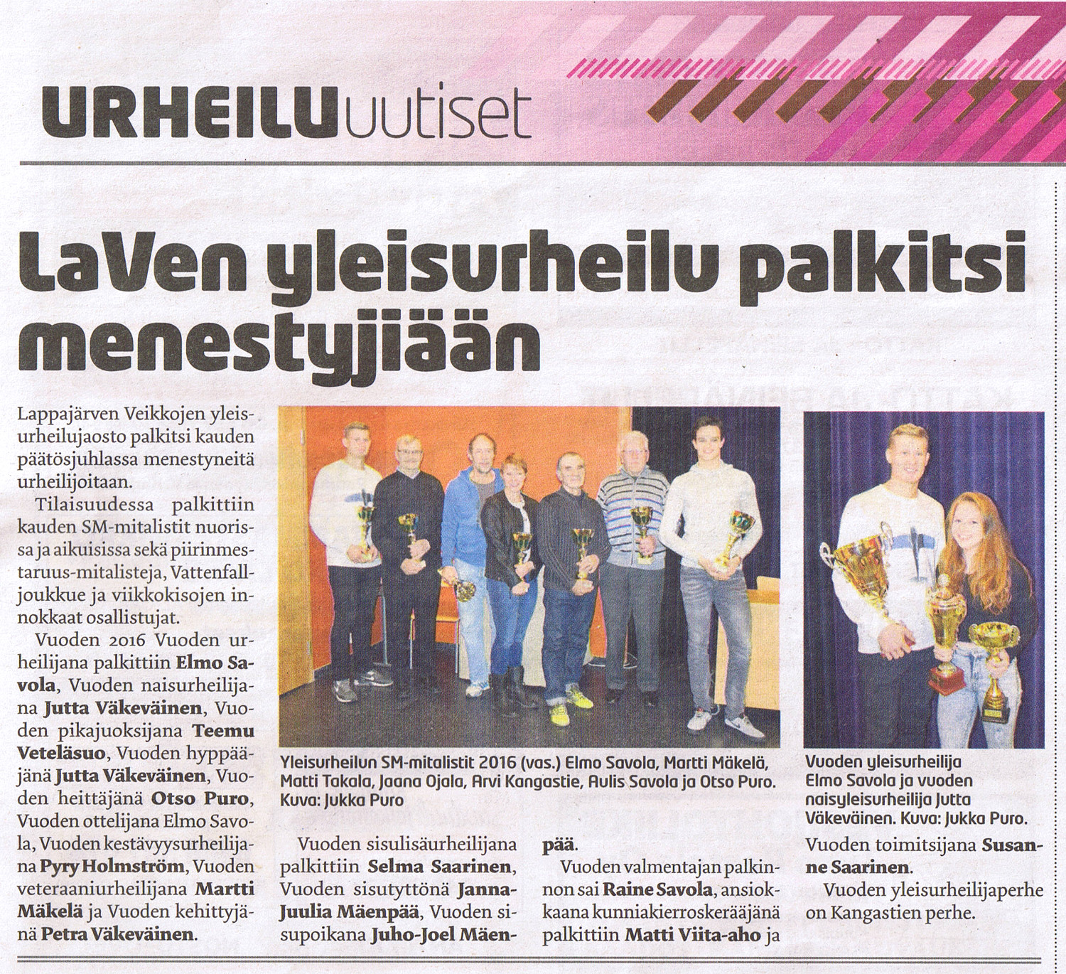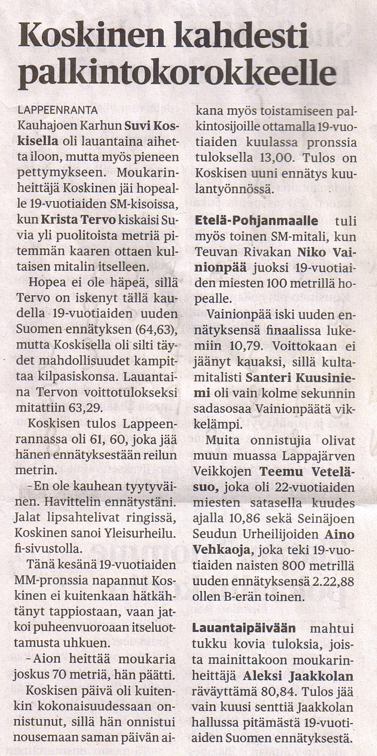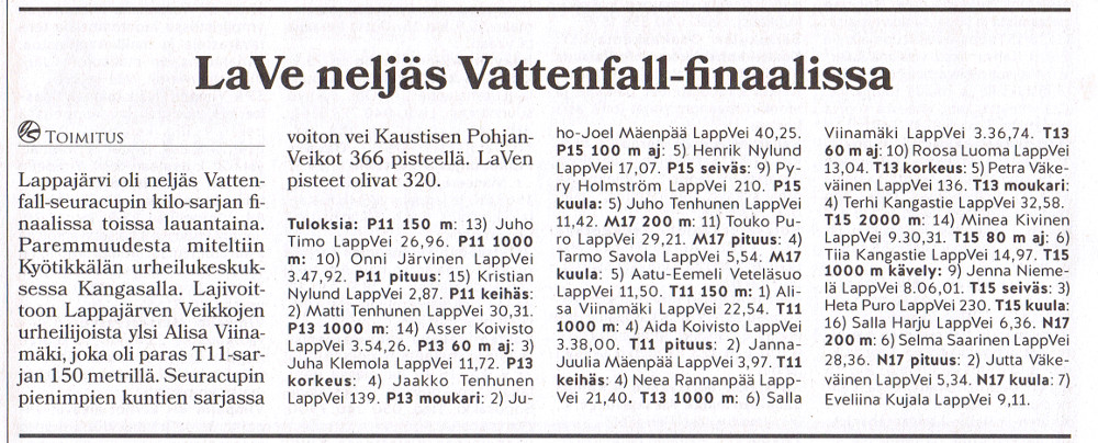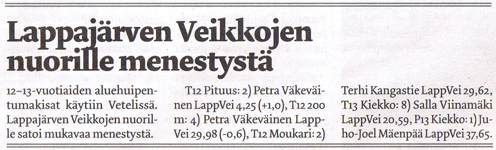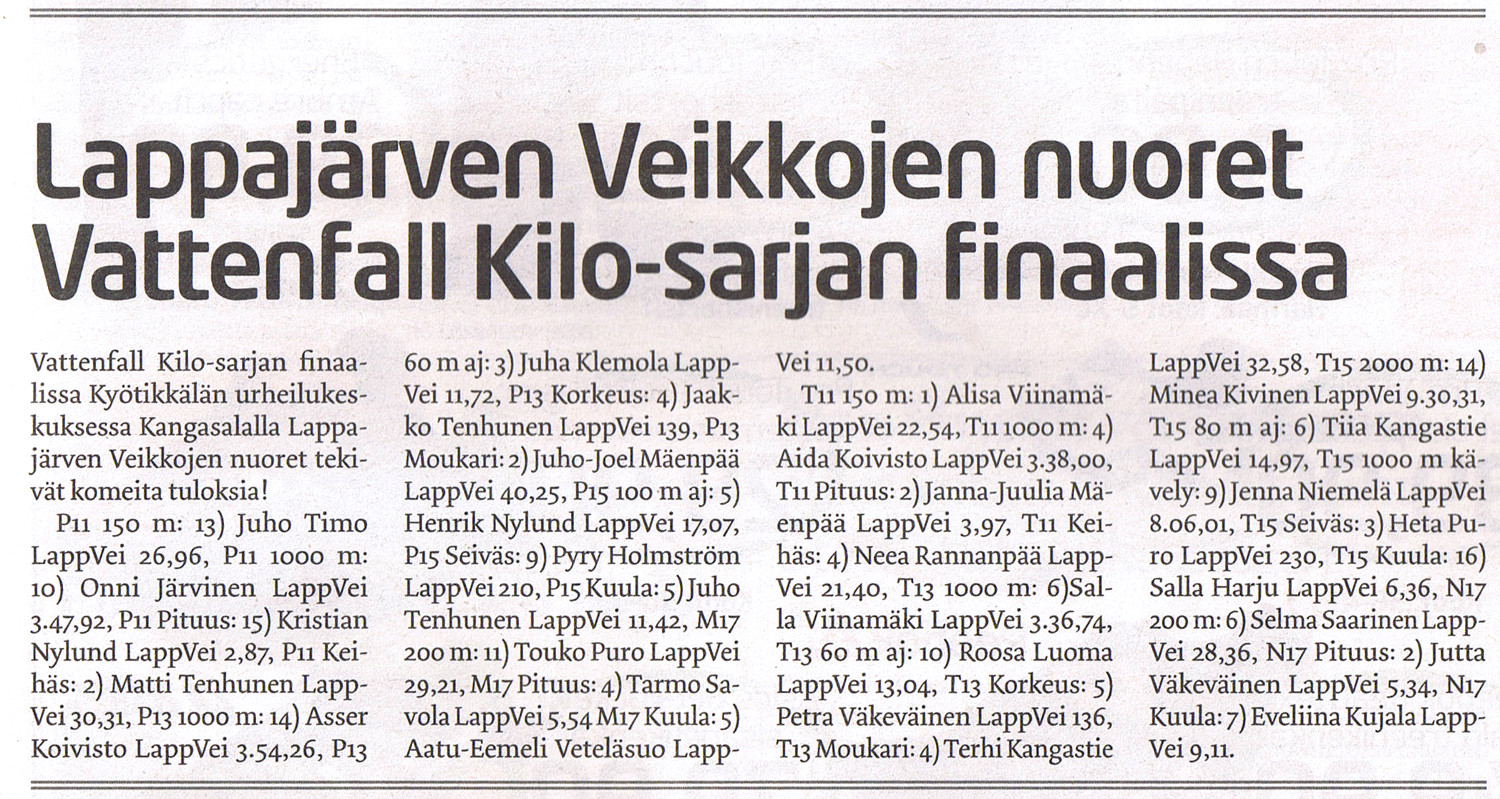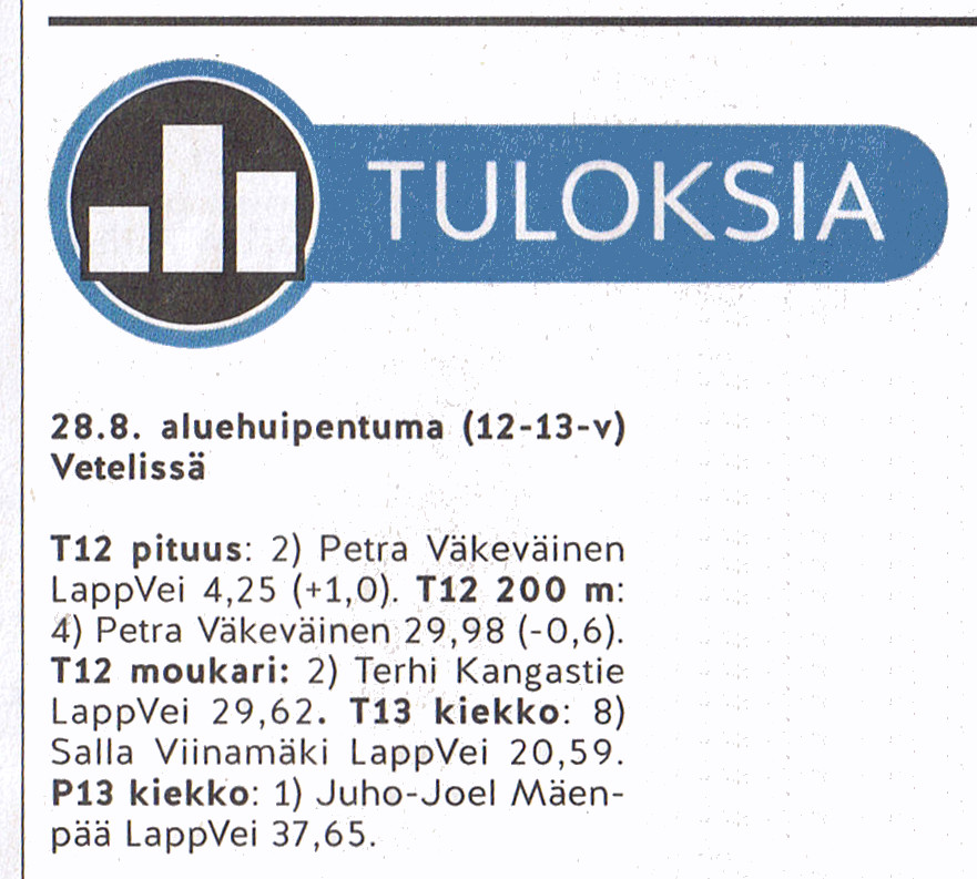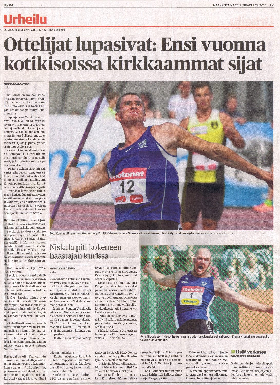 Torstai 26.7.2016 - LaVen urheilijoille hienoja sijoituksia pm-kisoissa