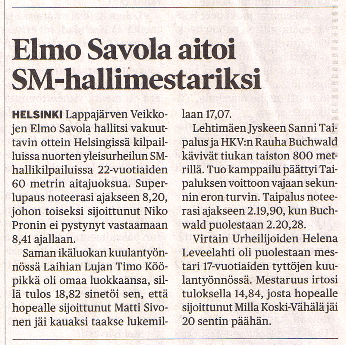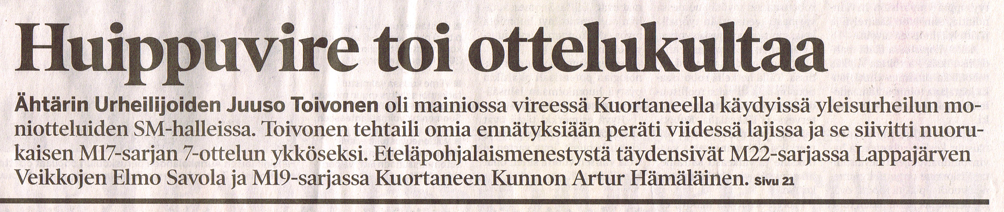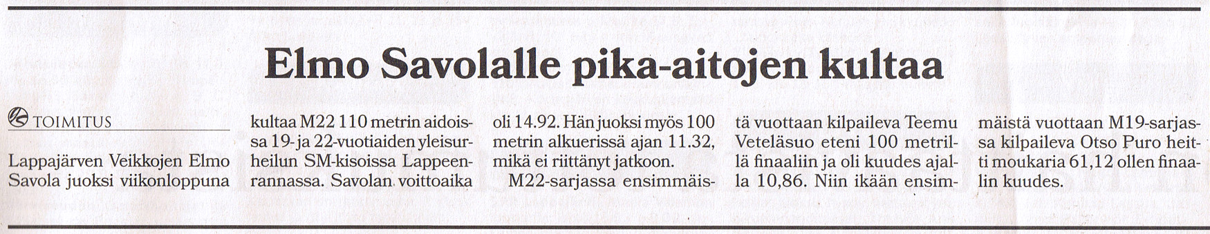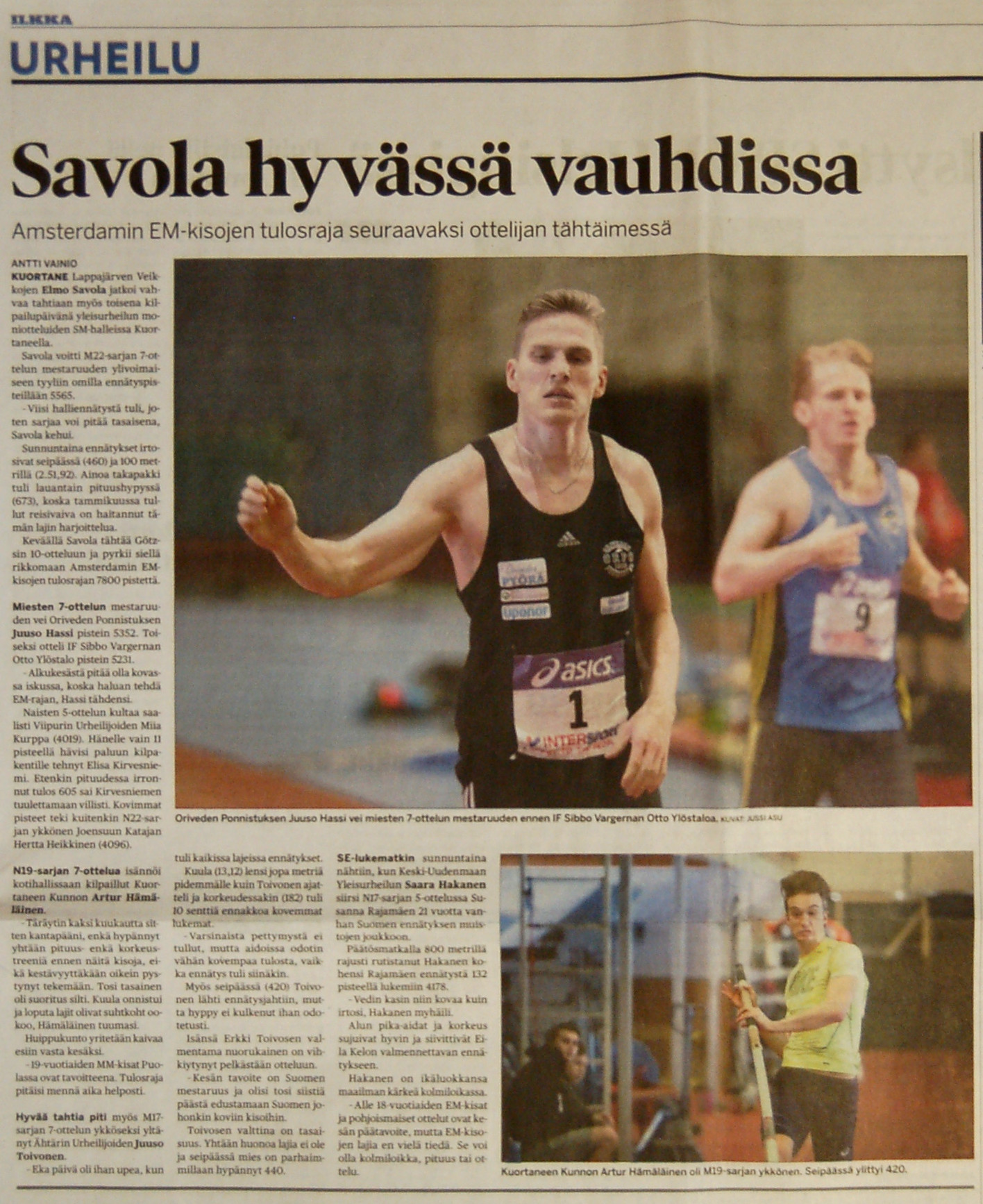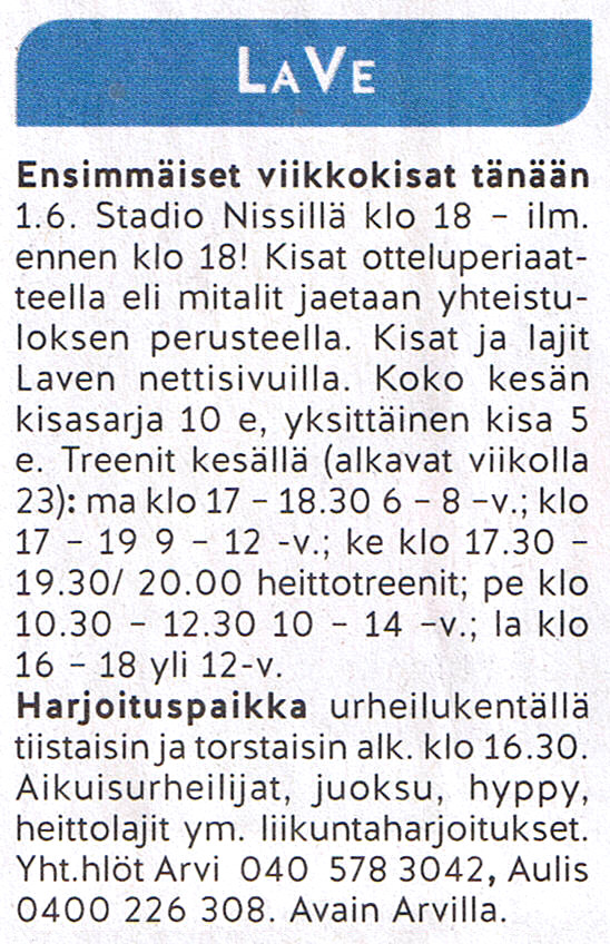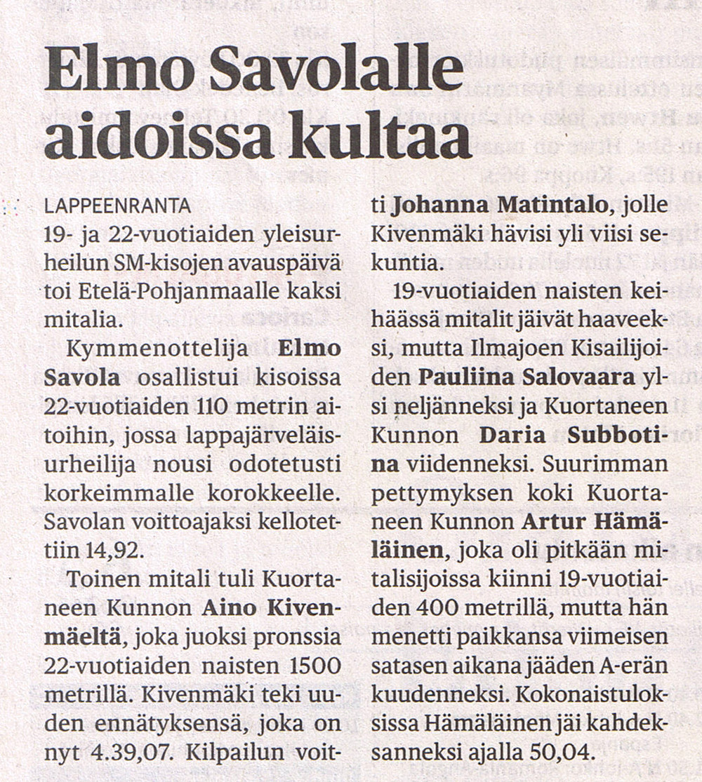 Torstai 26.7.2016 - LaVen urheilijoille hienoja sijoituksia pm-kisoissa