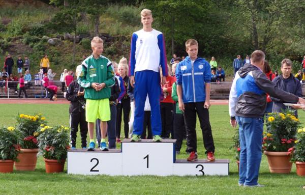 M17-sarjassa Tarmo oli lähtenyt kisaamaan hieman vanhempia urheilijoita vastaan (hän kilpailee vasta P14-sarjassa). Myös hän painiskeli askelmerkkien kanssa. Hyppy kulki kivasti ja tulos 540 toi neljännen sijan. Korkeudessa oli tiukkaa, sillä koko mitalikolmikko saavutti tuloksen 165. Tarmo hyppäsi myös tämän tuloksen ja oli hienosti toinen! Yritys 170 korkeudesta oli erittäin lähellä. Tuloksen tasosta kertoo se, että jo 165 oikeuttaa P14 Suomen tilaston jaettuun kolmanteen sijaan.