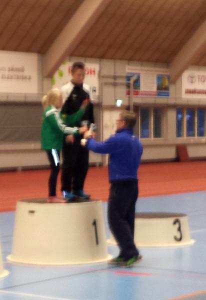 Kirsikkana kakussa juostiin M19 60 metrin finaali. Siinä starttasi pikakiitäjämme Teemu Veteläsuo. Alkuerä kulki hienosti ennätysaikaan 7.08 ja finaalissa vieläkin hienommin 7.04! Tämä oikeutti kisan toiseen sijaan, mutta voittaja oli sarjaan yli-ikäinen (M21-ikäinen). Viime vuoden loukkaantuminen on muisto vain ja tähtäin kohti hienoa hallikautta. Teemu hilaa tulosta hienosti kohti uutta sekuntilukua. Tulos oikeuttaa tässä vaiheessa Suomen miesten TOP20-listalla sijalle 18 eli kovaa Teemu menee...