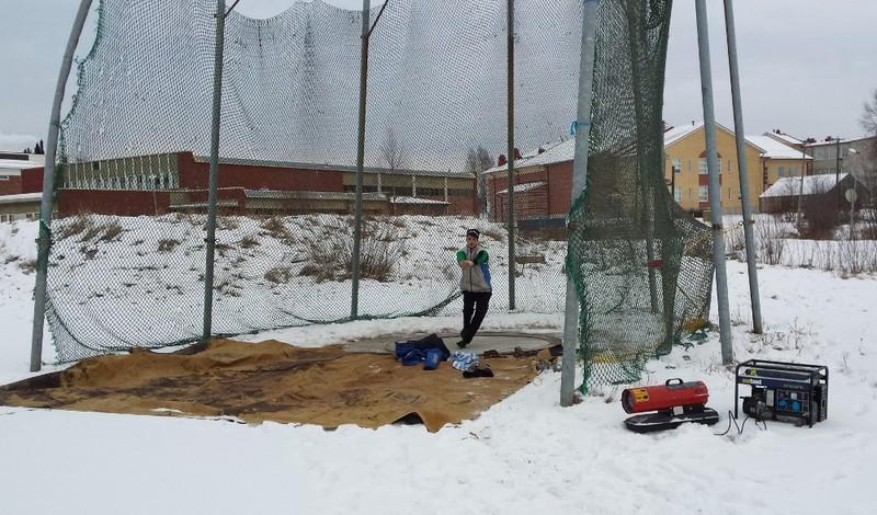 Kuortaneen heittopaikalla on tehty talven mittaan jonkin verran lajiharjoituksia ja leudon talven vuoksi on päästy heittämään myös Lappajärven harjoitusheittopaikalla. Ulkoheitot ovat moukarinheitossa välttämättömiä, sillä se on ainoa yleisurheilulaji, jossa talven kisat käydään ulkona. Talviolosuhteissa heittäminen on aika haastavaa ja tulostaso usein melko vaatimaton.