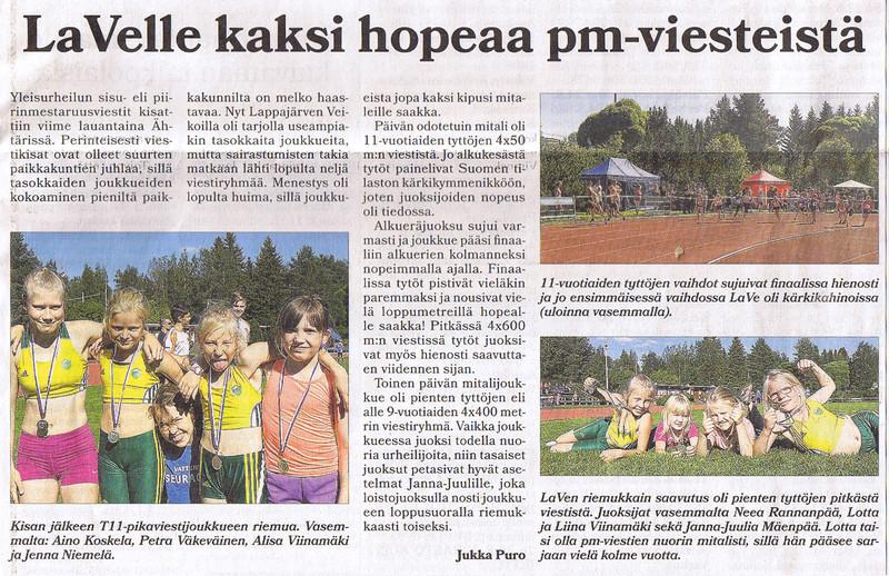 Suomen aikuisurheiluliiton SM-kilpailut kisattiin Jyväskylässä. LaVen kivasti menestyneet aikuisurheiljat menestyivät jälleen hienosti. Jaana Ojala pinkaisi N45-sarjan hopealle ajalla 8,89. M70-sarjassa Arvi Kangastie aitoi 60 m:n aidoissa pronssille ajalla 13,53 ja oli 7. 200 metrillä tuloksella 34,56.