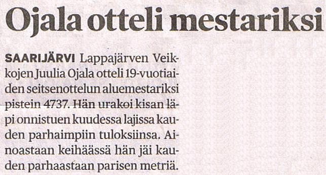 Kauhavalla ykkösottelijamme Elmo Savola kokeili miesottelijalle harvinaisempaa lajia eli 200 m:n sileää. Matka taittui 1,2 metrin vastatuuleen erinomaiseen aikaan 22.73, joka nostaa hänet kaikkien aikojen yhdeksänneksi LaVen miesten ennätystilastossa.