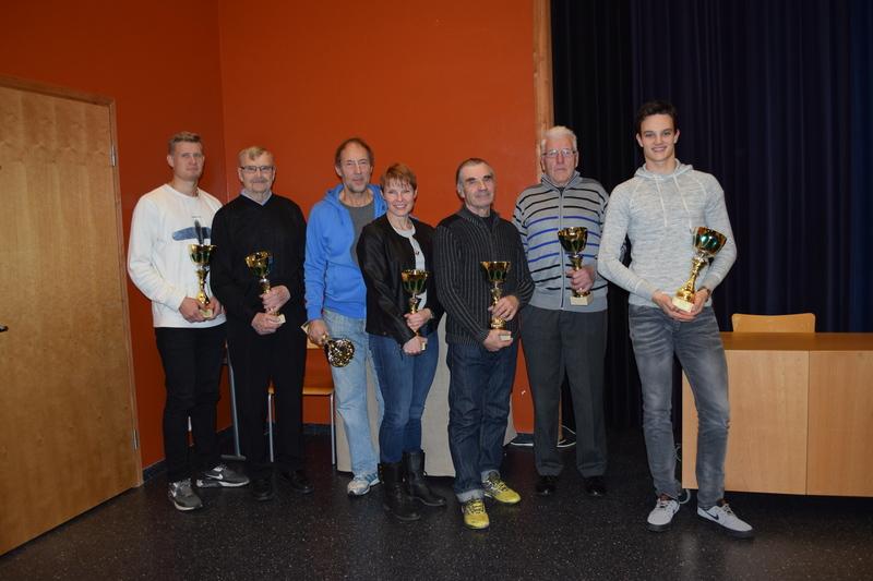 SM-mitalesteja 2016 vasemmalta: Elmo Savola, Martti Mäkelä, Matti Takala, Jaana Ojala, Arvi Kangastie, Aulis Savola ja Otso Puro.